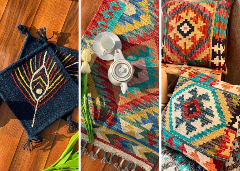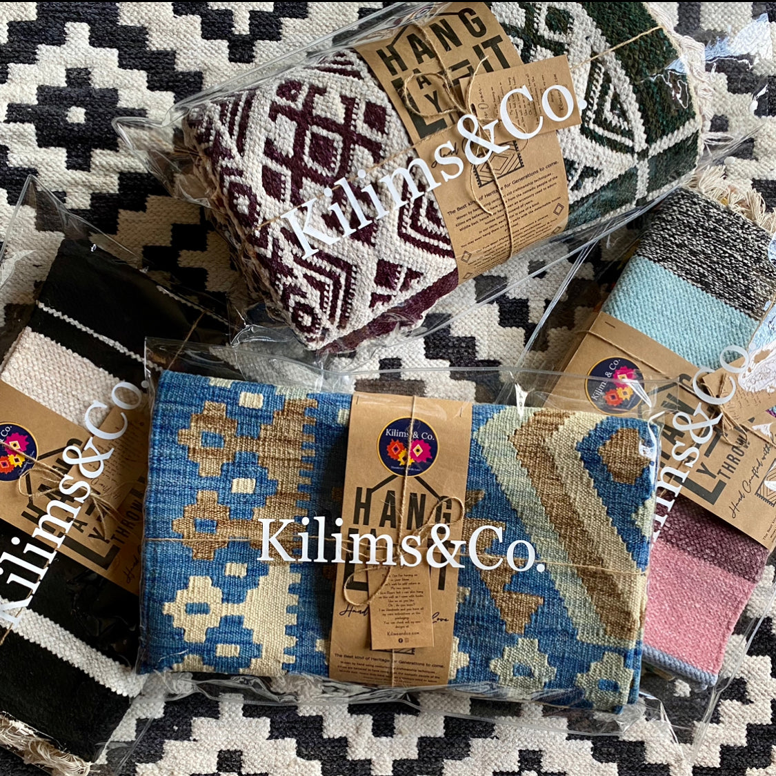 Each Kilim comes with peel off wall mounts, with which anyone can easily hang them anywhere in their home, no need for nails and hammers any more.