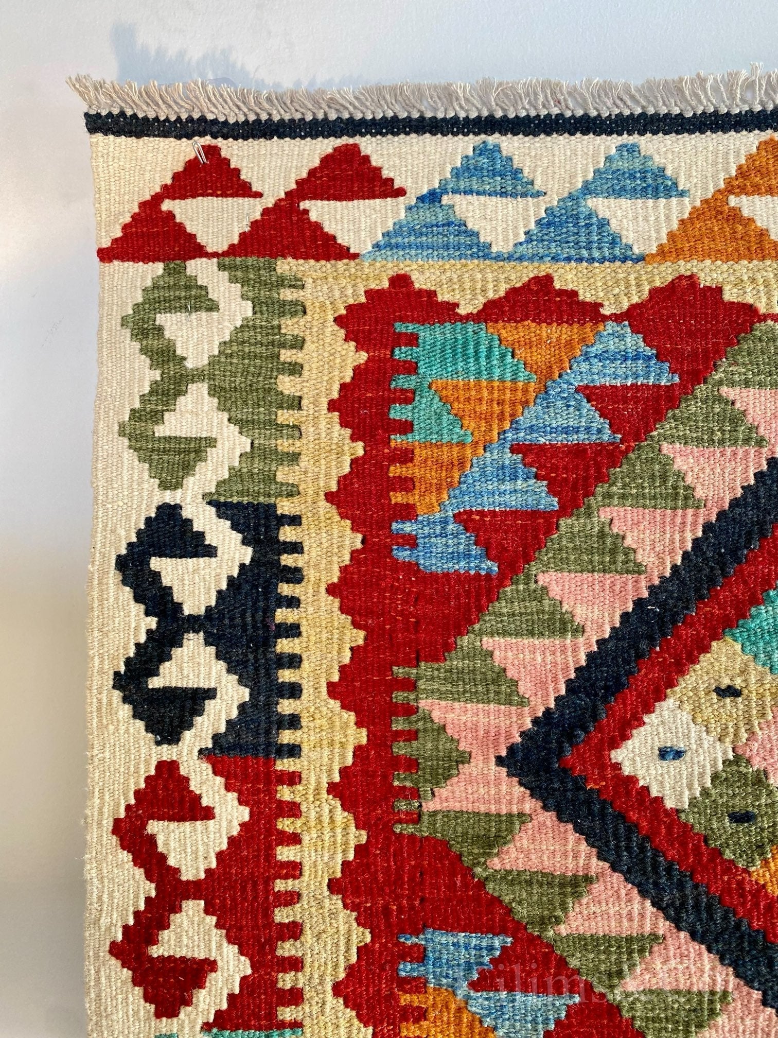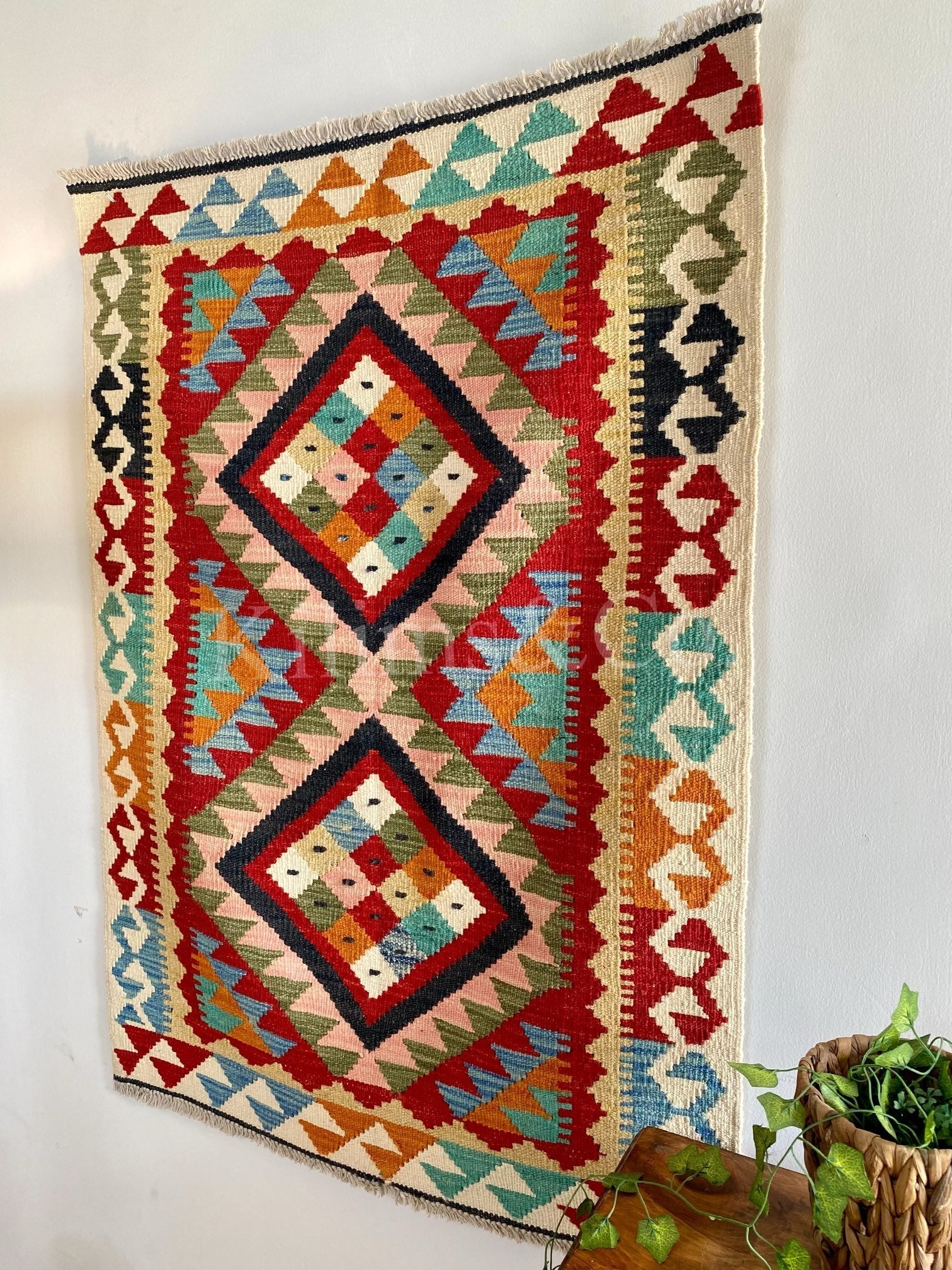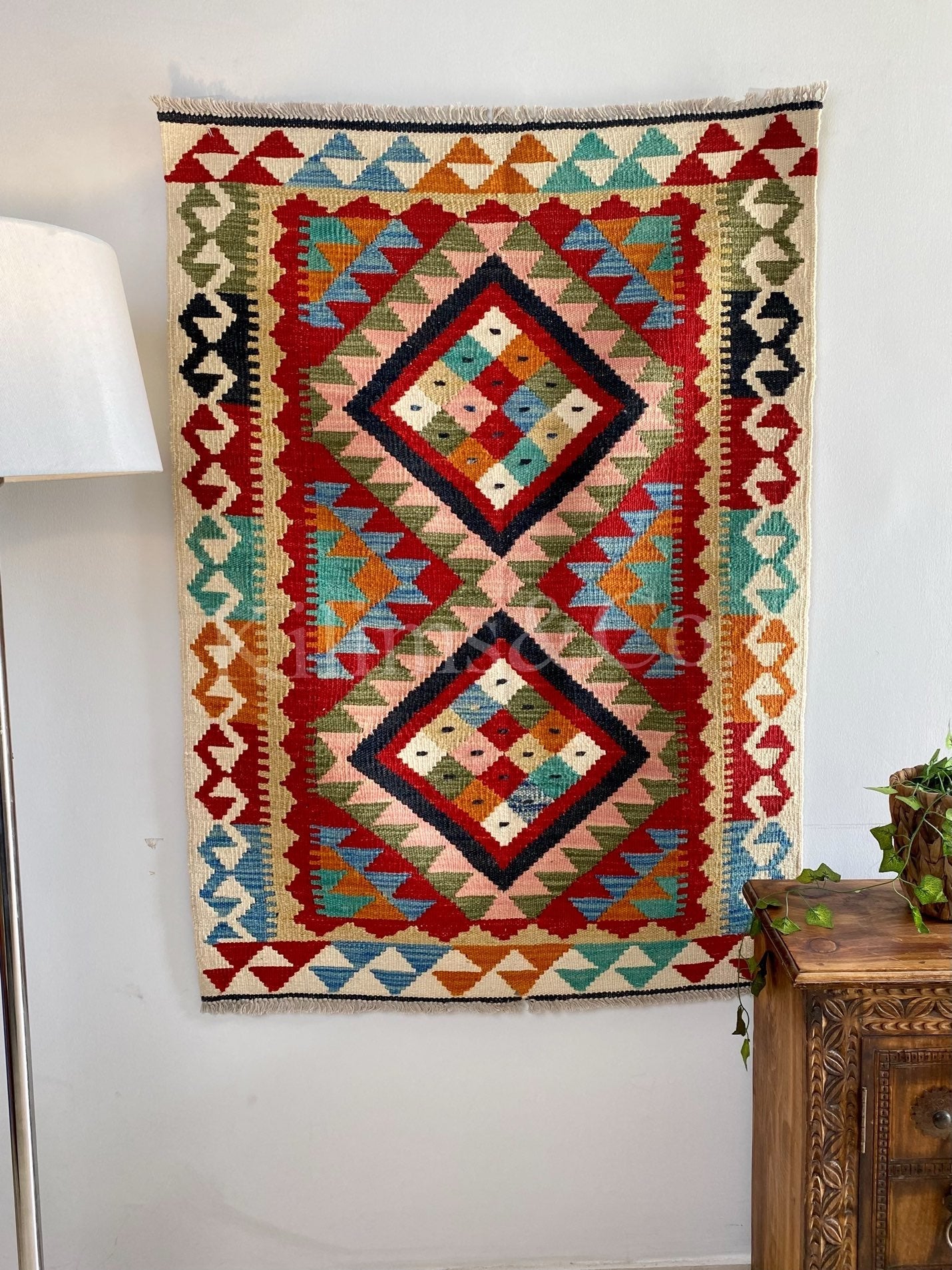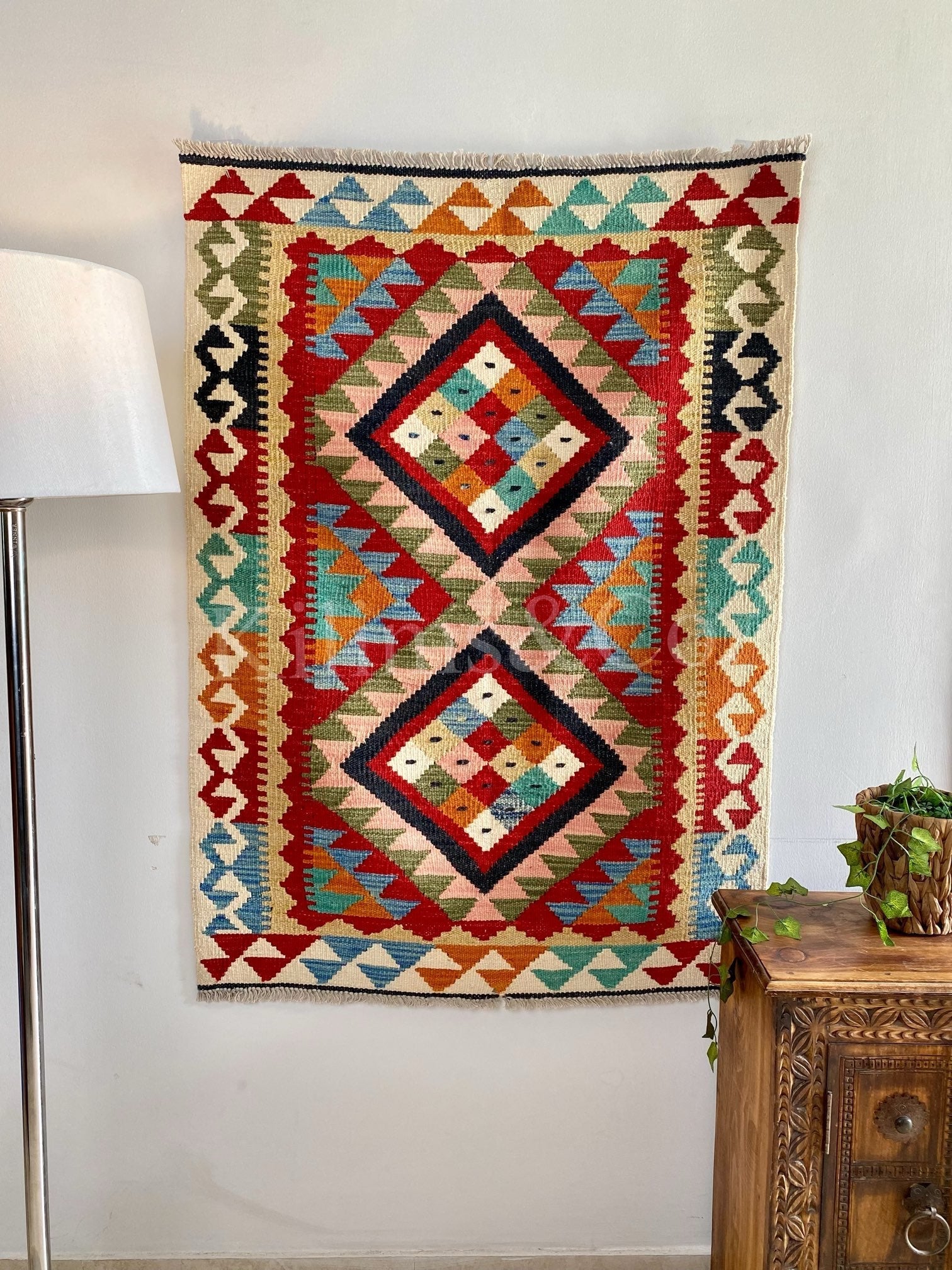 Decorate your walls with this Premium Afghan Kilim, it's sharp vivid colours will please the eyes and make your room feel more homely.