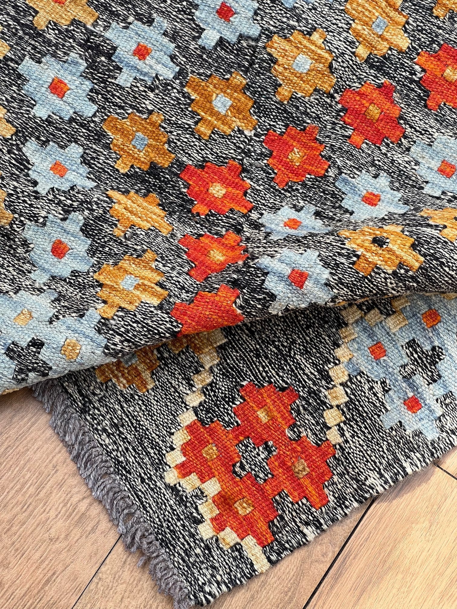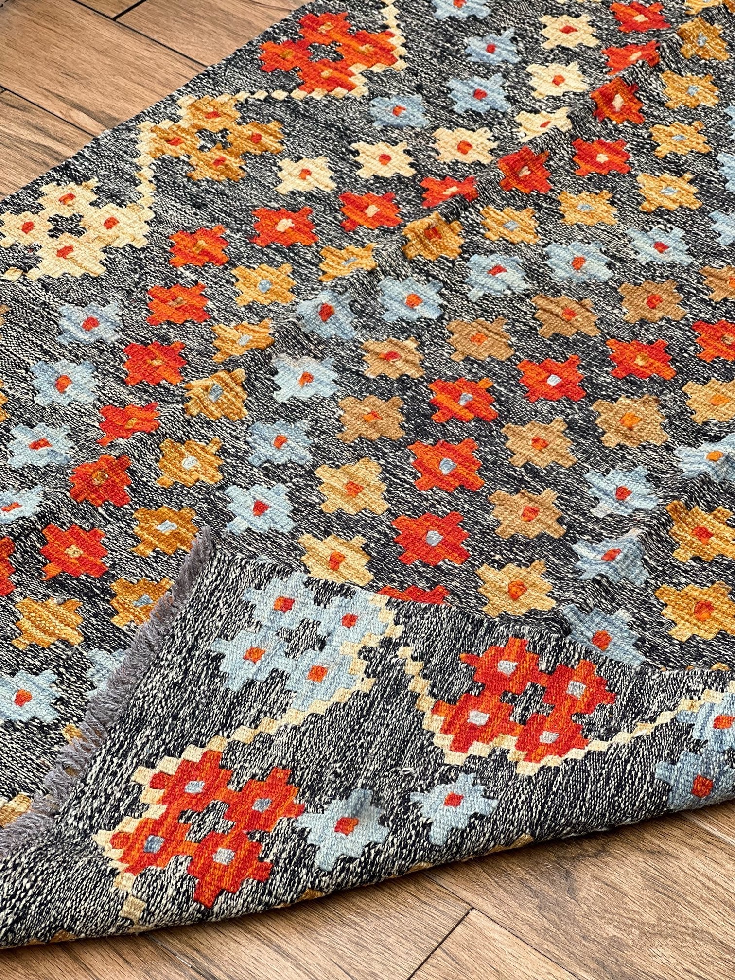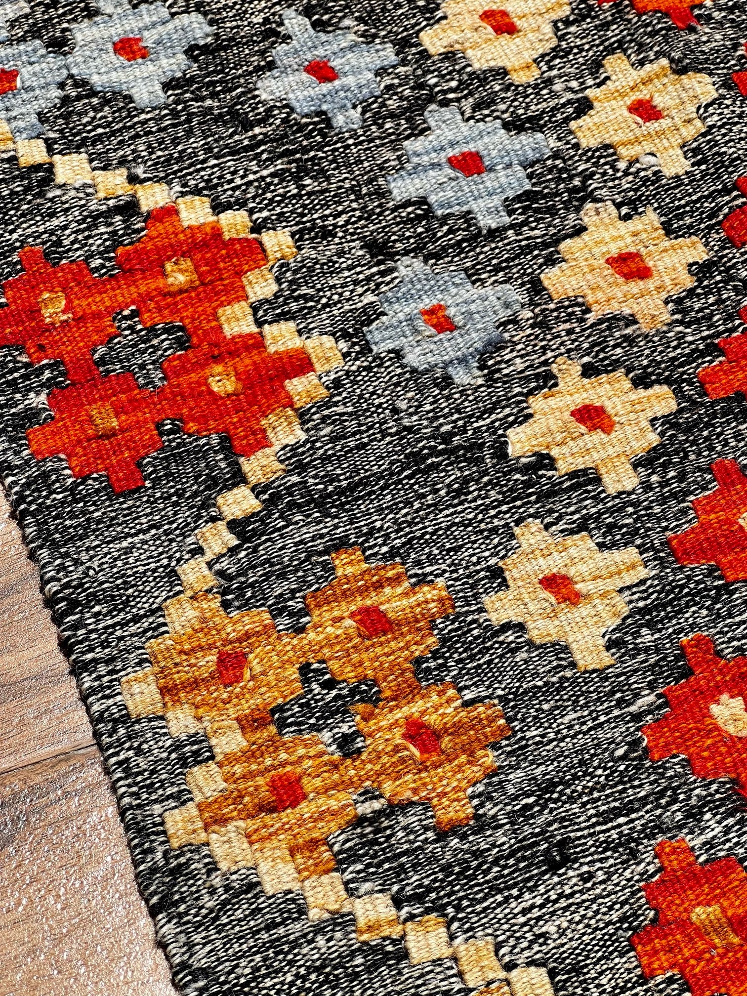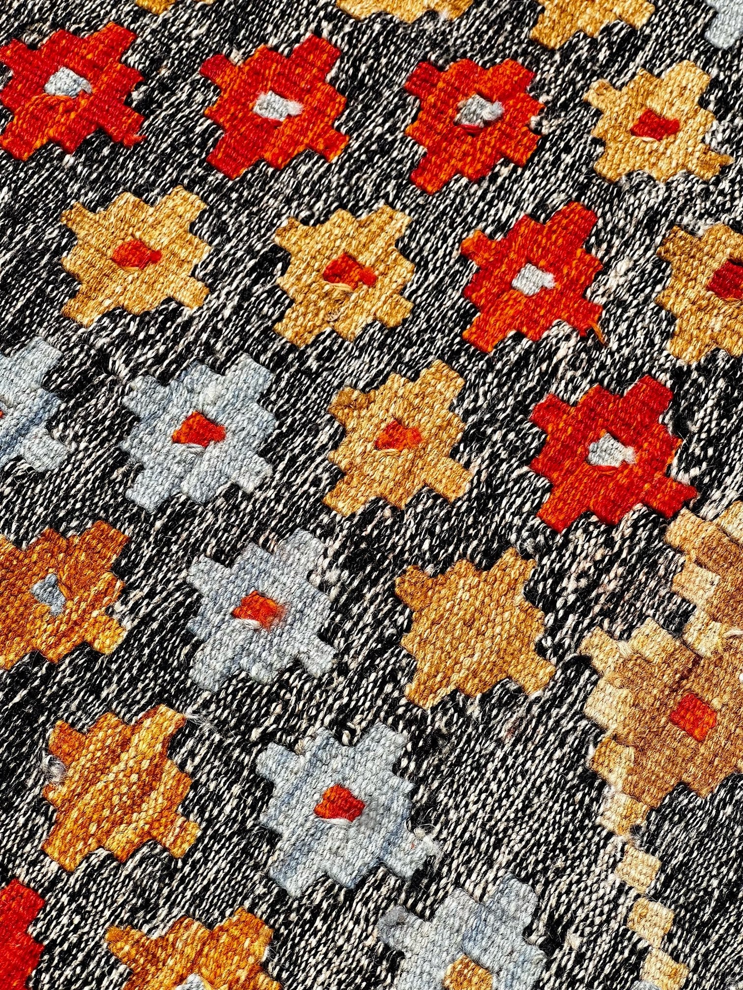 Inspired by centuries of tradition, the "Ember Blossom" kilim captures the essence of cultural heritage, combining it with a contemporary touch. As your eyes trace the intricate patterns and motifs, you'll feel the connection to ancient artistic wisdom, passed down through generations.