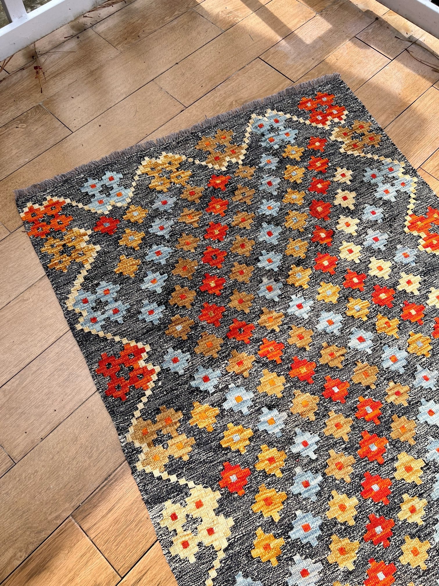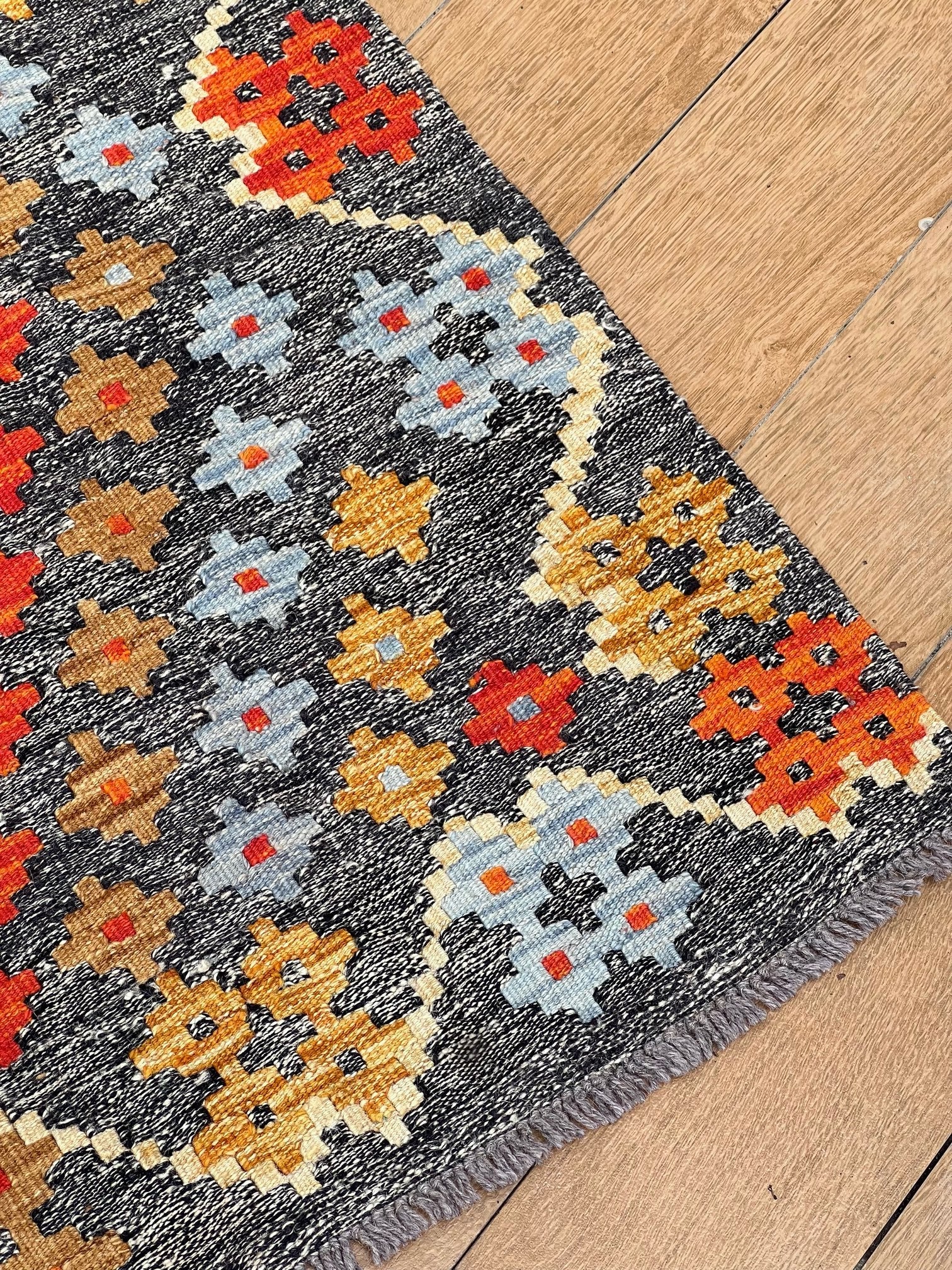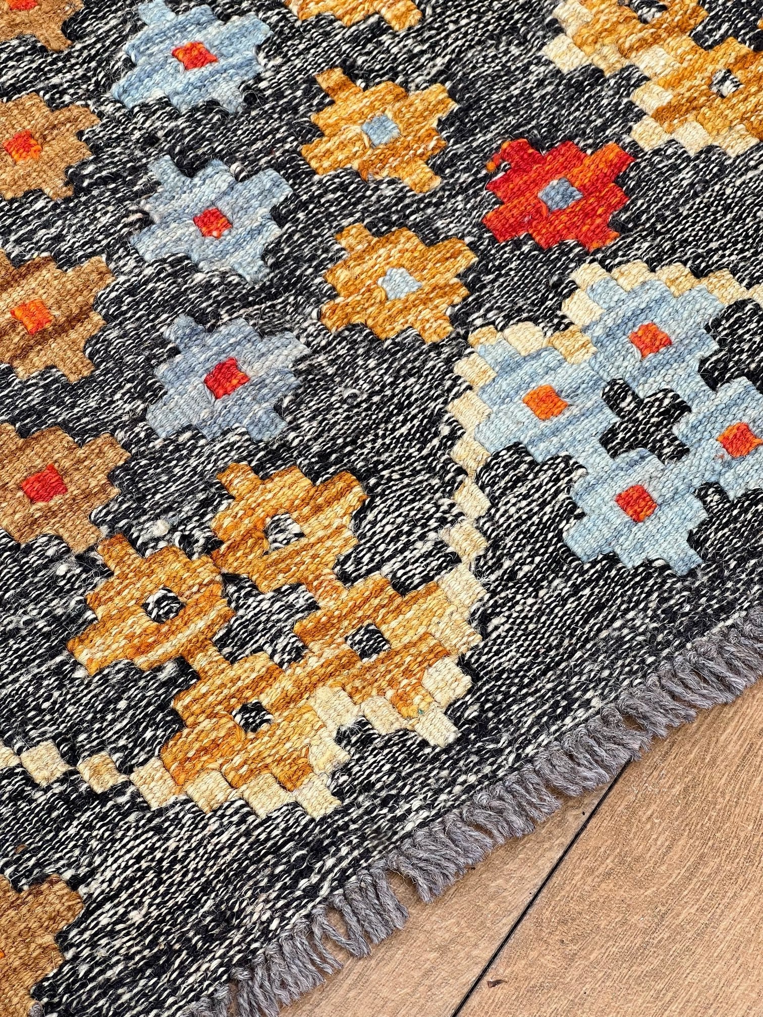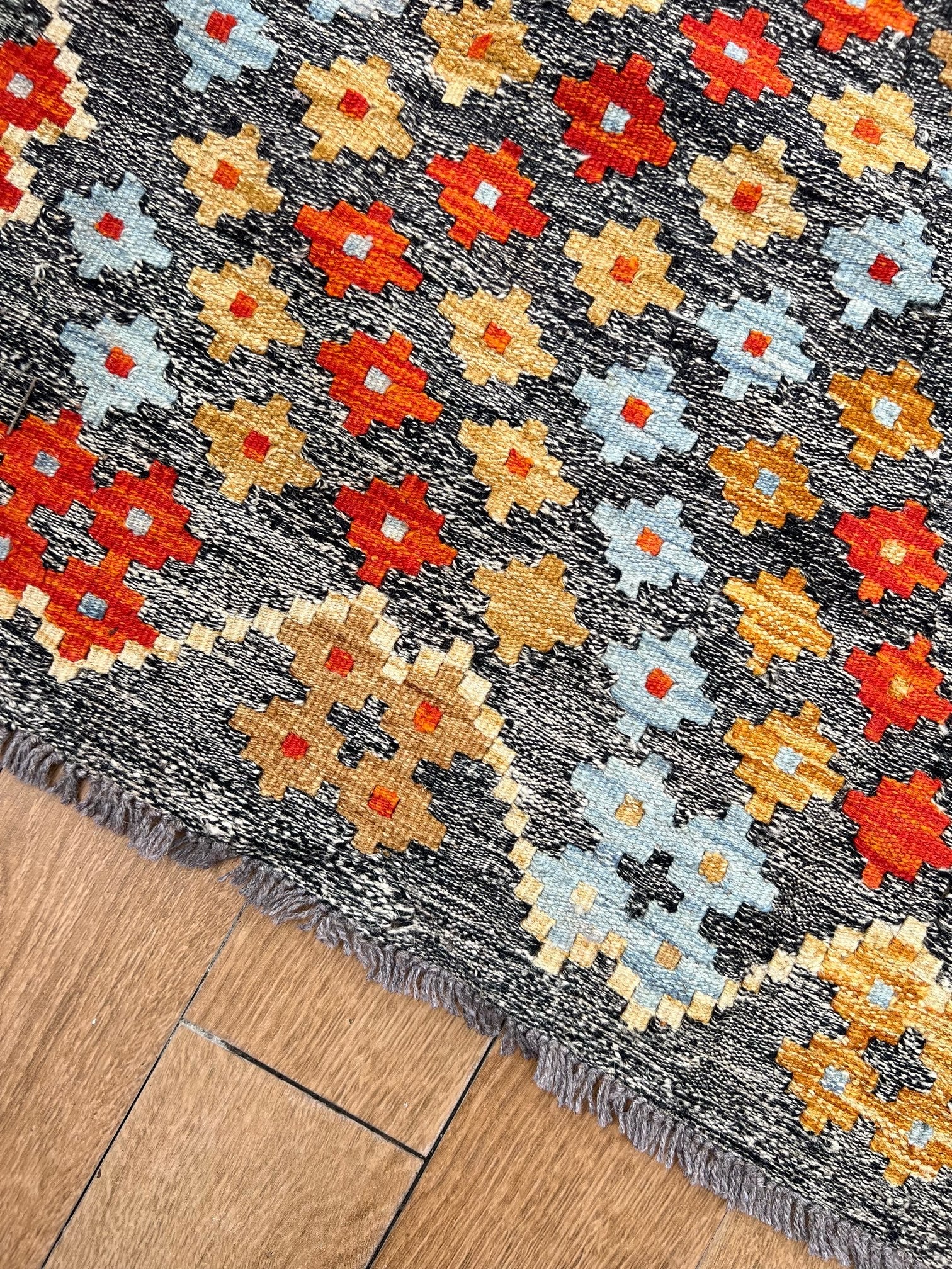 Inspired by centuries of tradition, the "Ember Blossom" kilim captures the essence of cultural heritage, combining it with a contemporary touch. As your eyes trace the intricate patterns and motifs, you'll feel the connection to ancient artistic wisdom, passed down through generations.