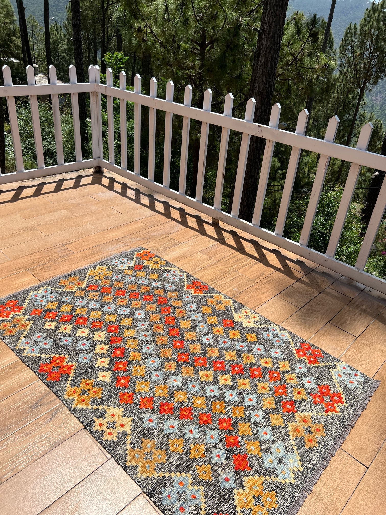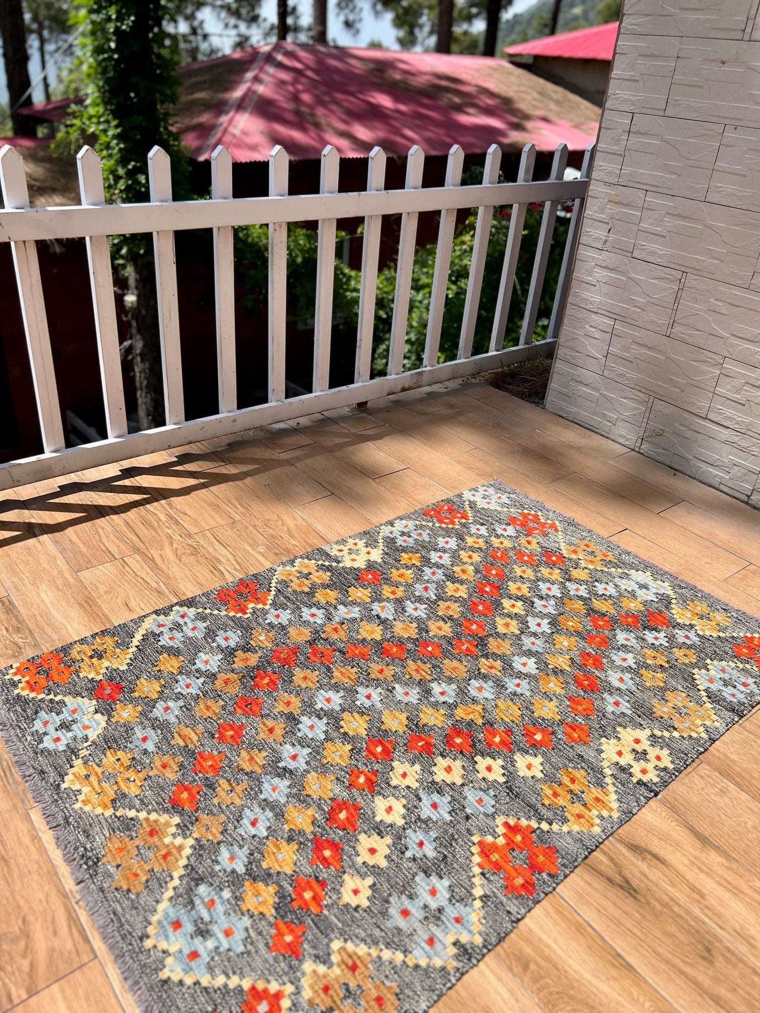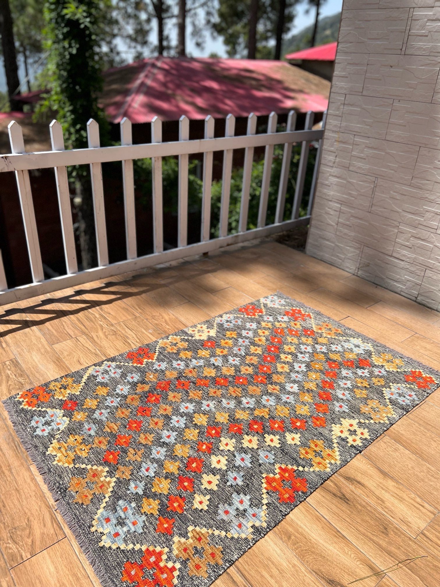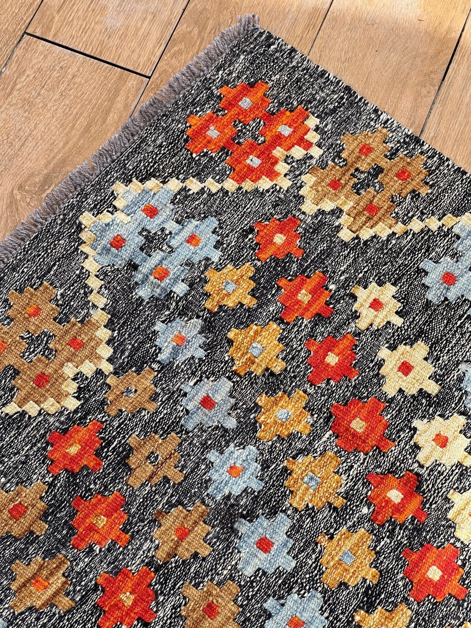 Inspired by centuries of tradition, the "Ember Blossom" kilim captures the essence of cultural heritage, combining it with a contemporary touch. As your eyes trace the intricate patterns and motifs, you'll feel the connection to ancient artistic wisdom, passed down through generations.