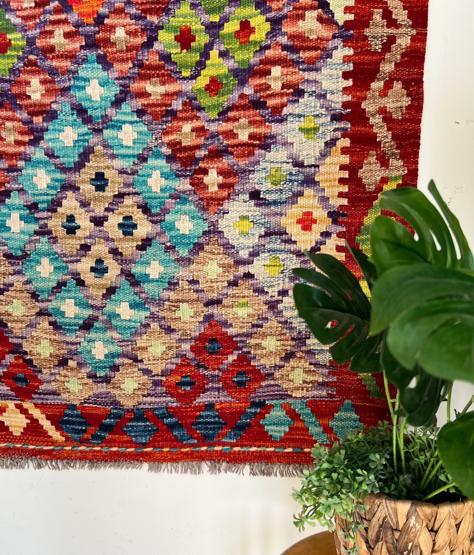 With this Premium Afghan Kilim, it's sharp vivid colours will please the eyes and make your room feel more homely.