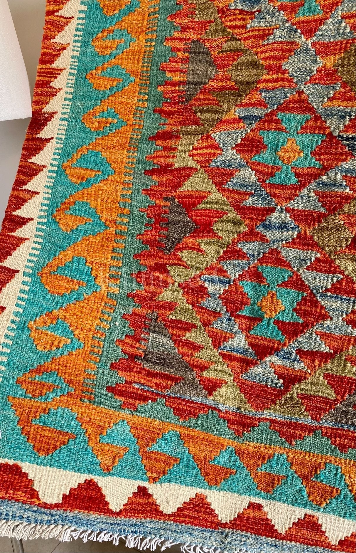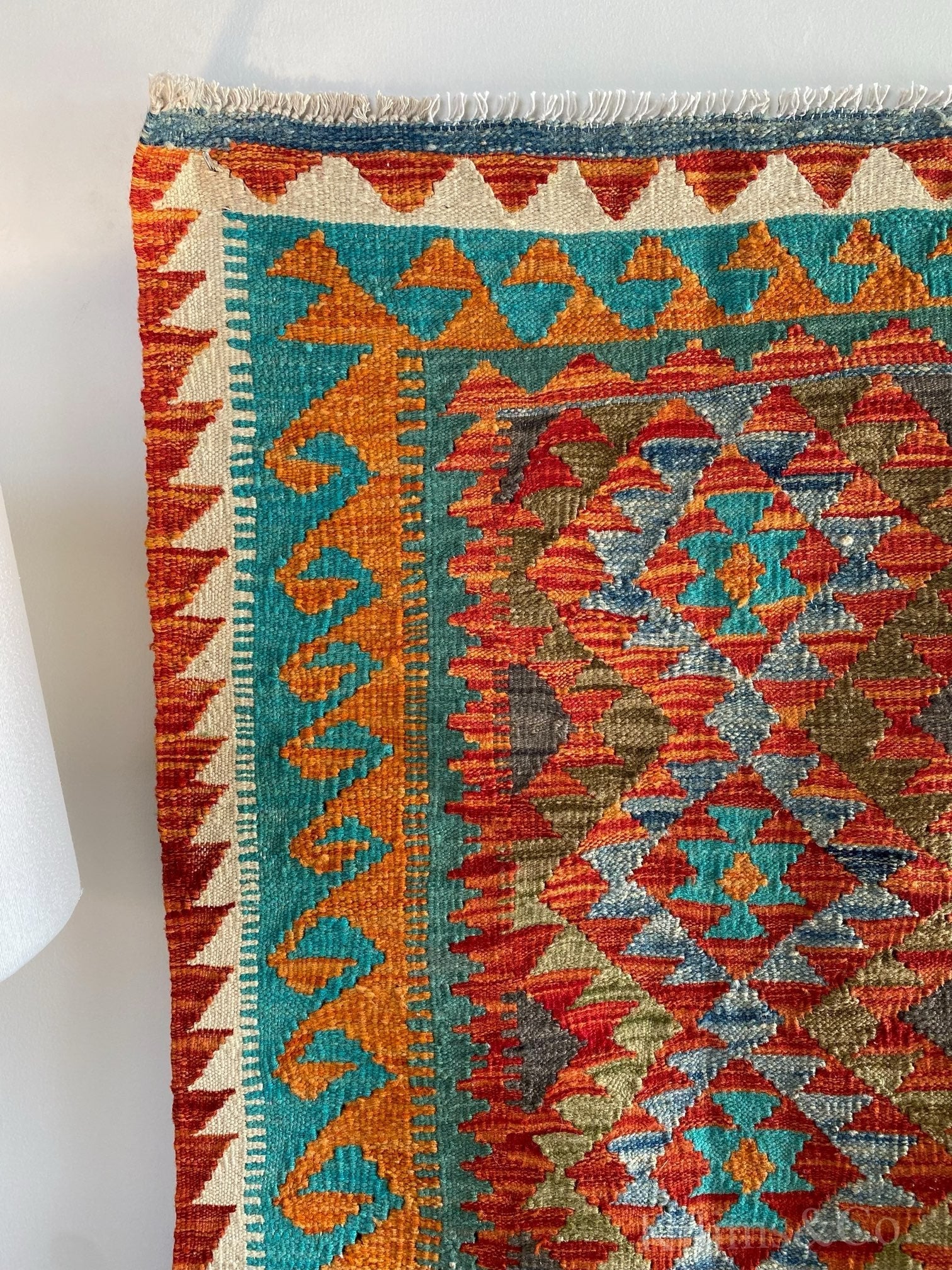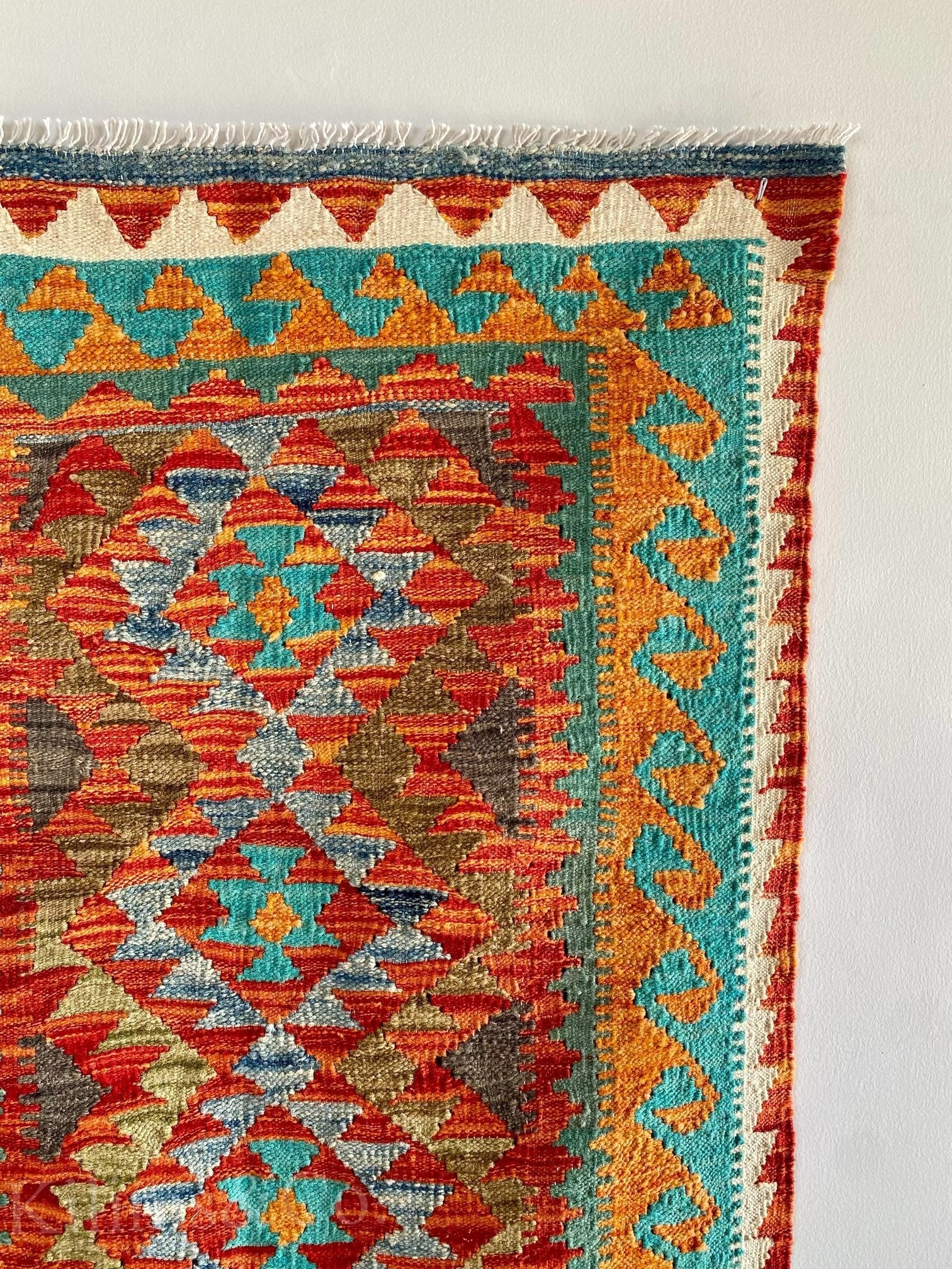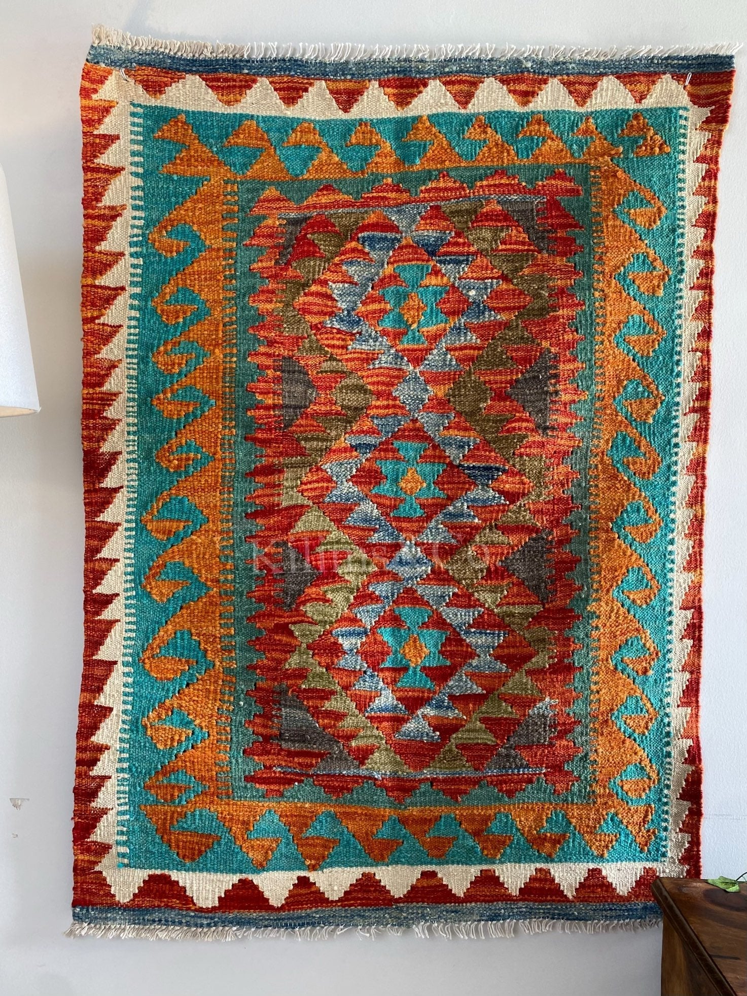 Decorate your walls with this Premium Afghan Kilim, it's sharp vivid colours will please the eyes and make your room feel more homely.