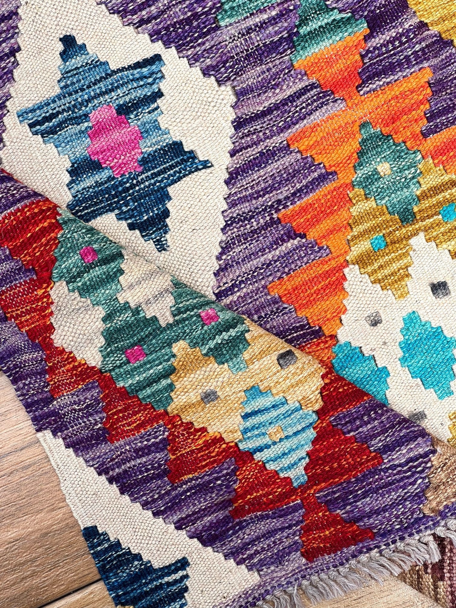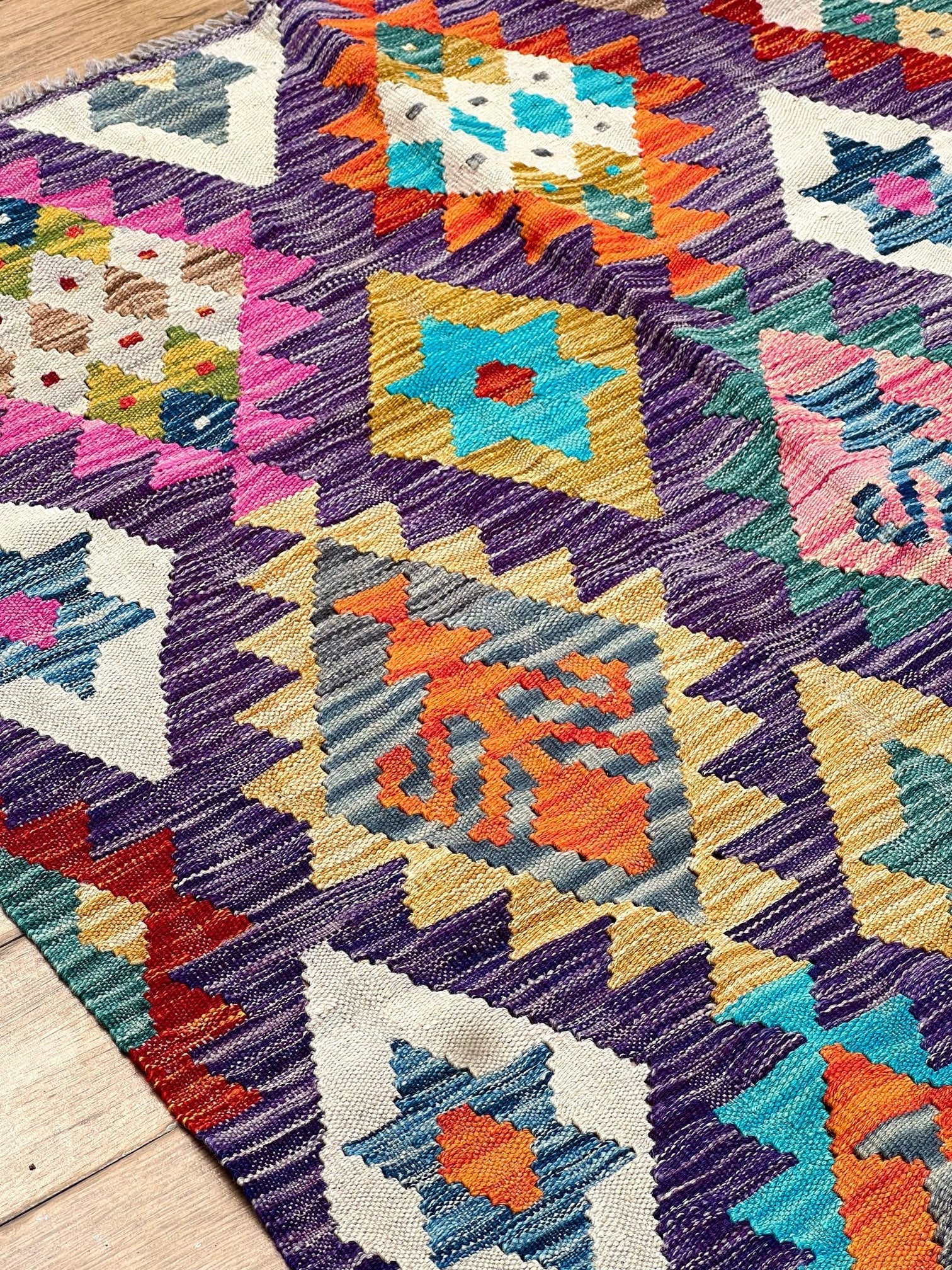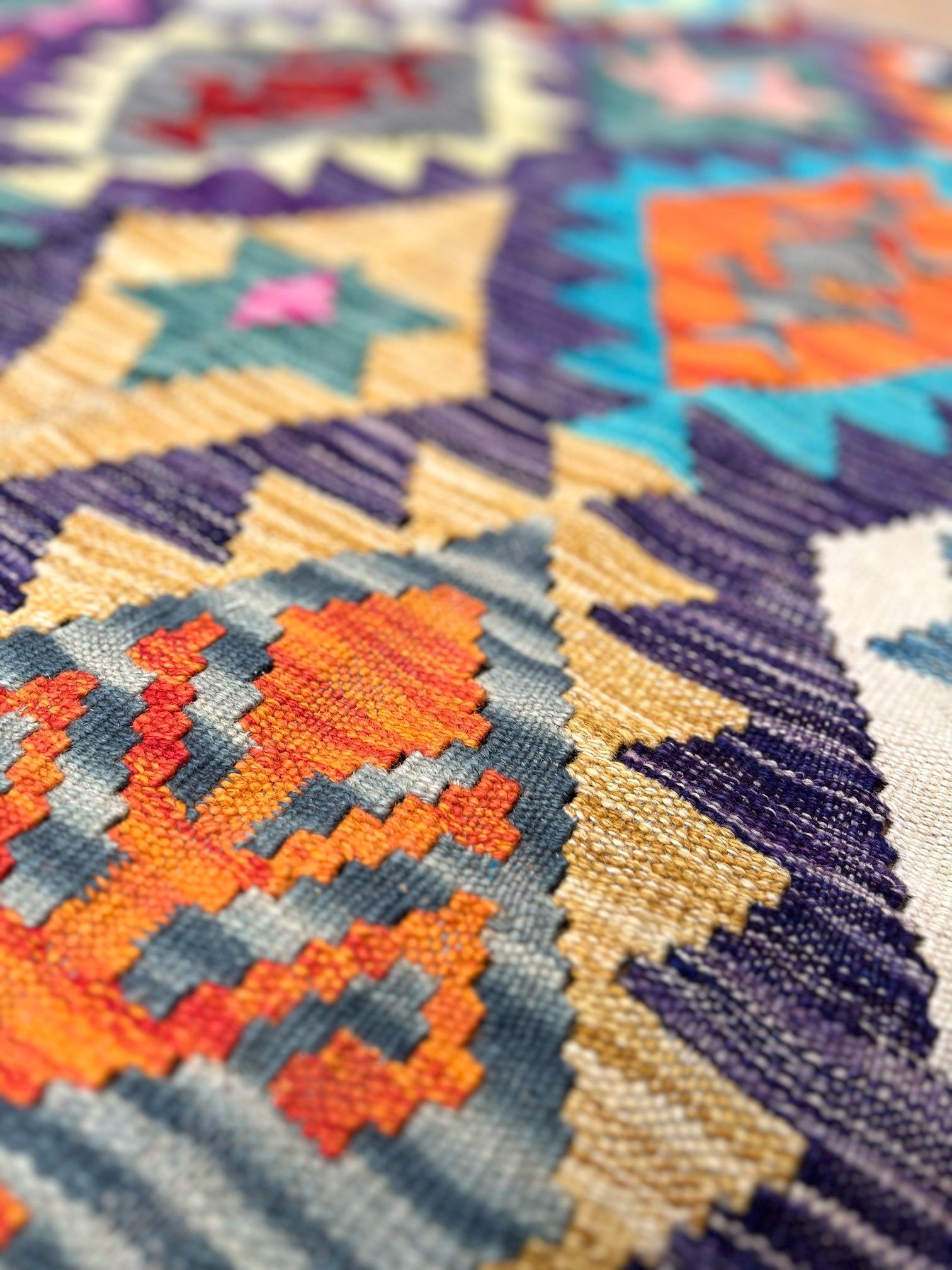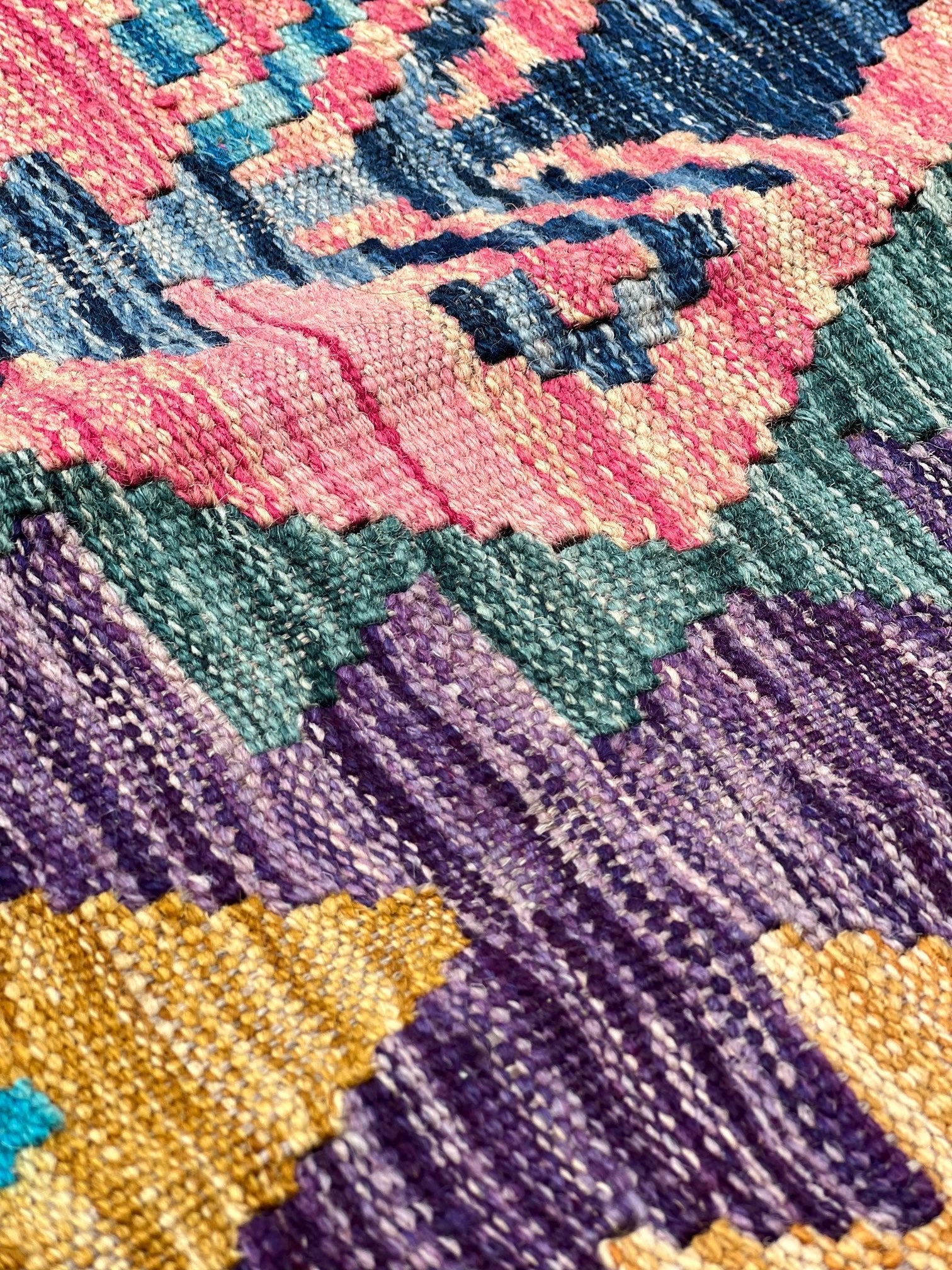 Crafted from the finest pure sheep wool and dyed with natural botanical dyes, "Majestic Peaks" exemplifies a commitment to quality and sustainability. Each kilim is meticulously handcrafted by skilled artisans, ensuring exceptional comfort, long-lasting beauty, and a touch of the mountains right in your Pakistani home.