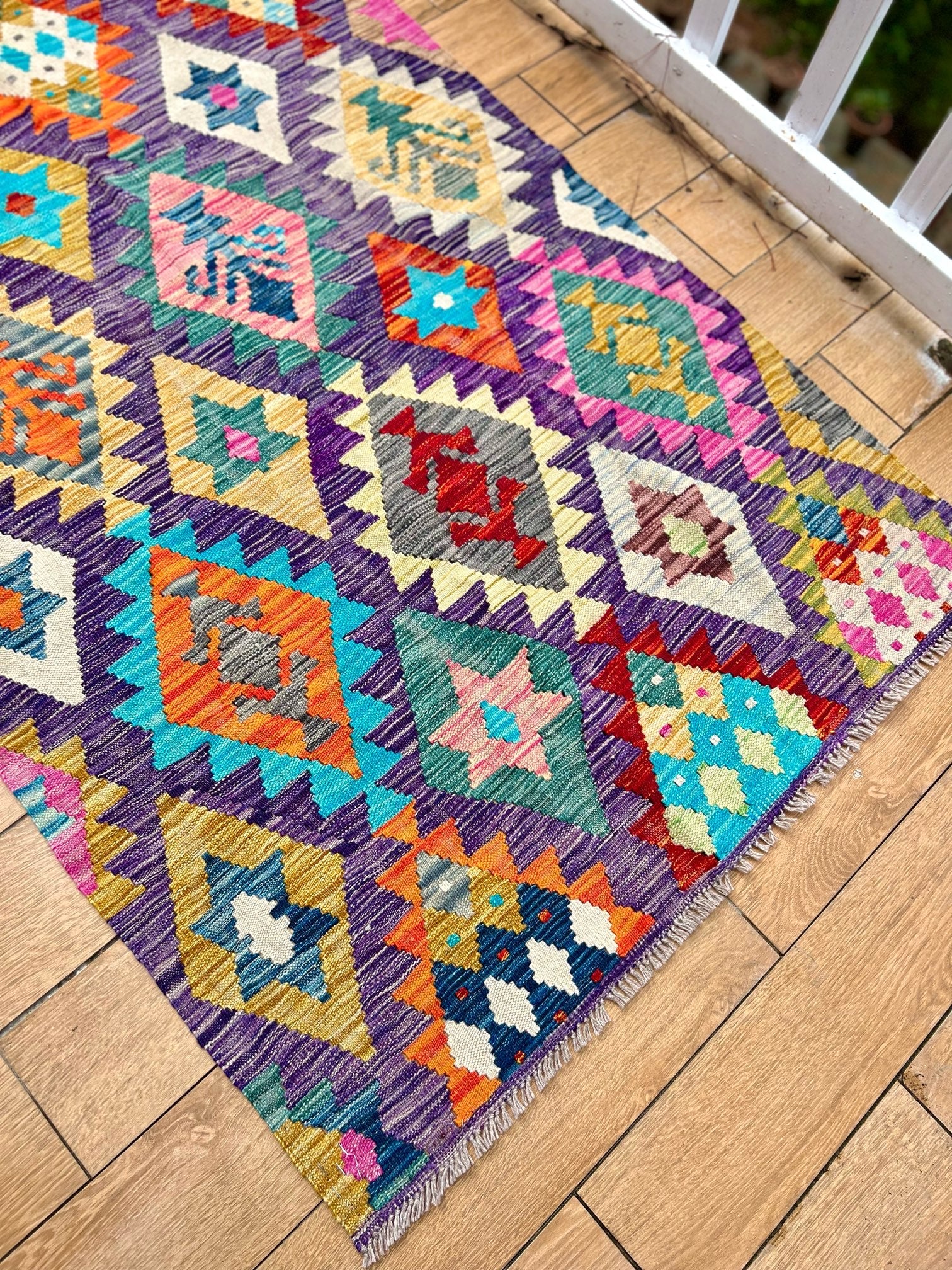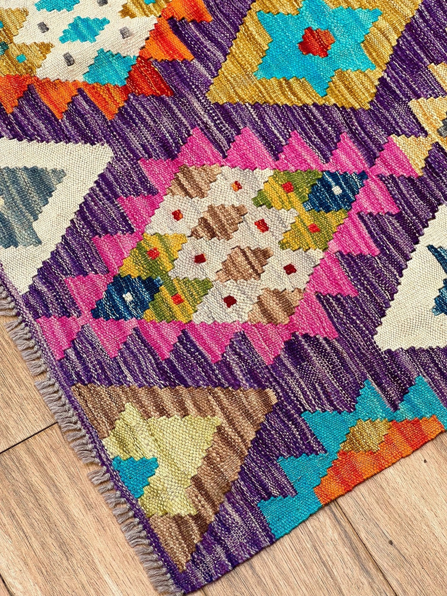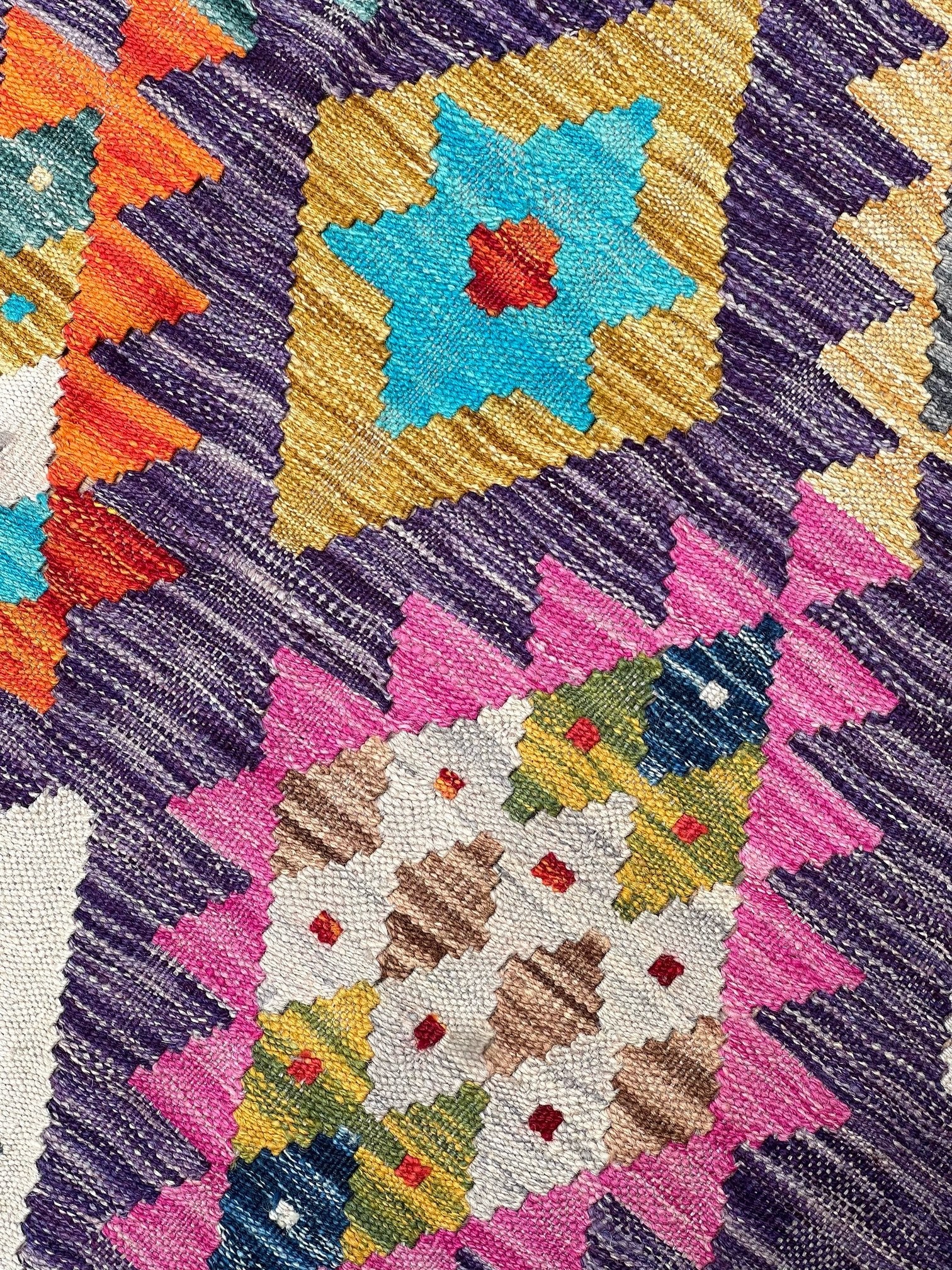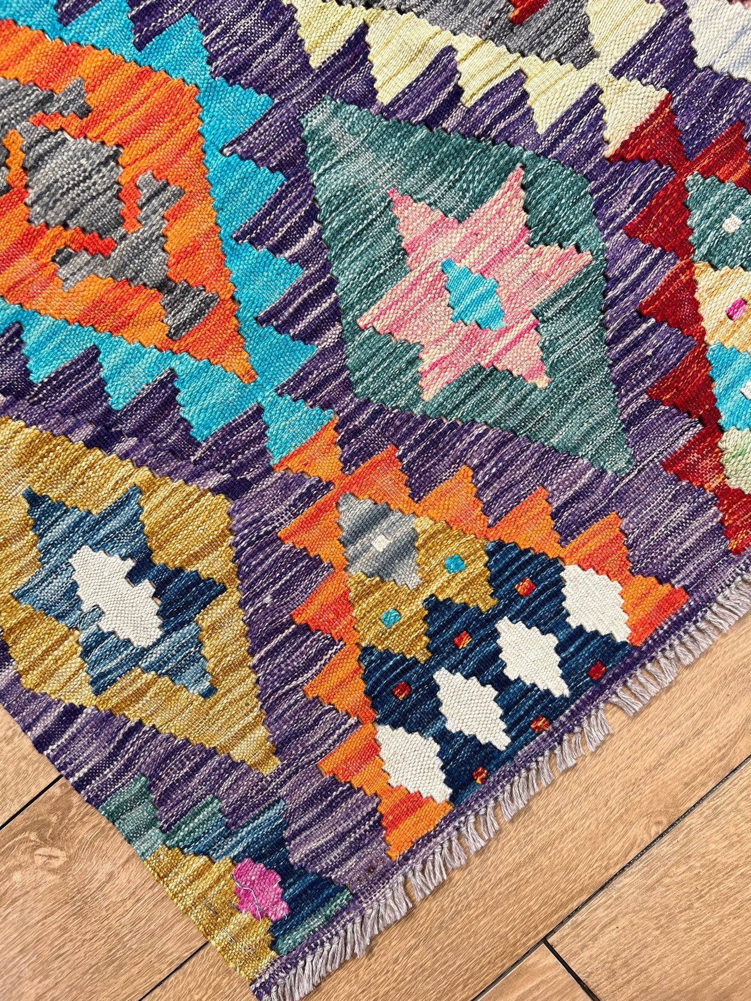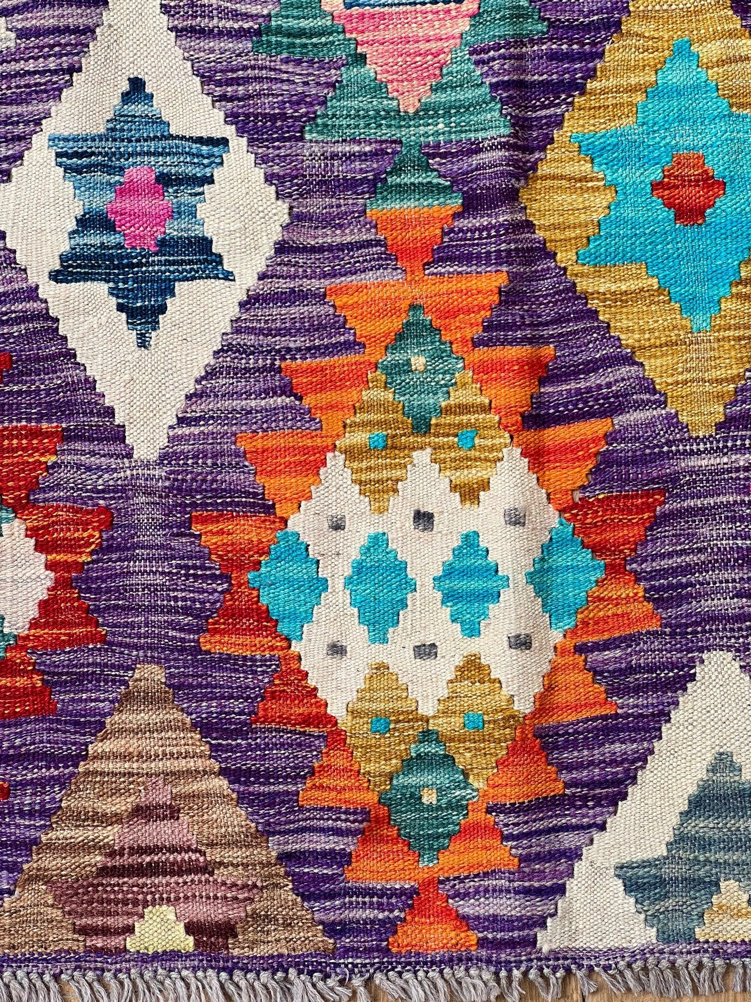Crafted from the finest pure sheep wool and dyed with natural botanical dyes, "Majestic Peaks" exemplifies a commitment to quality and sustainability. Each kilim is meticulously handcrafted by skilled artisans, ensuring exceptional comfort, long-lasting beauty, and a touch of the mountains right in your Pakistani home.