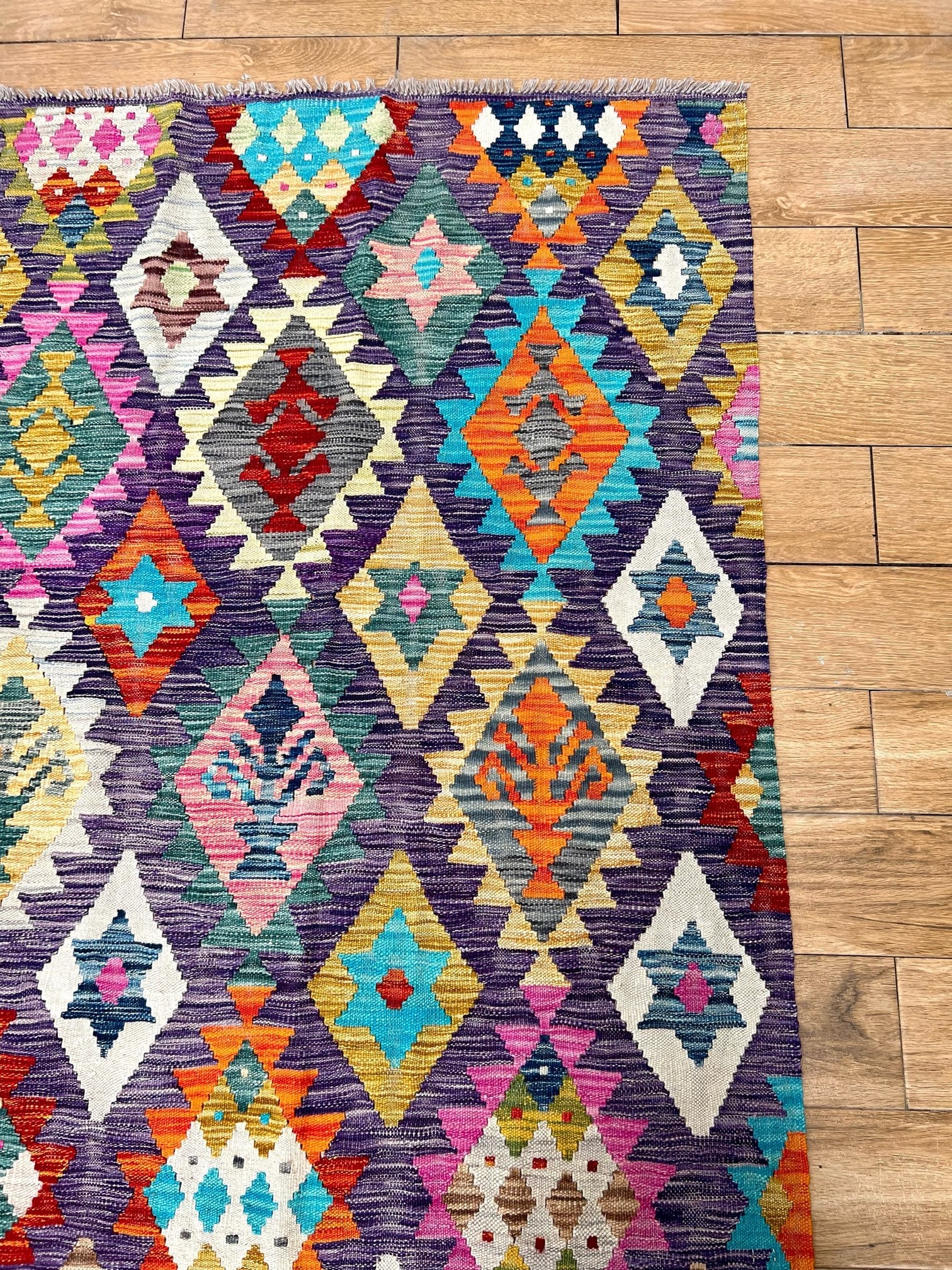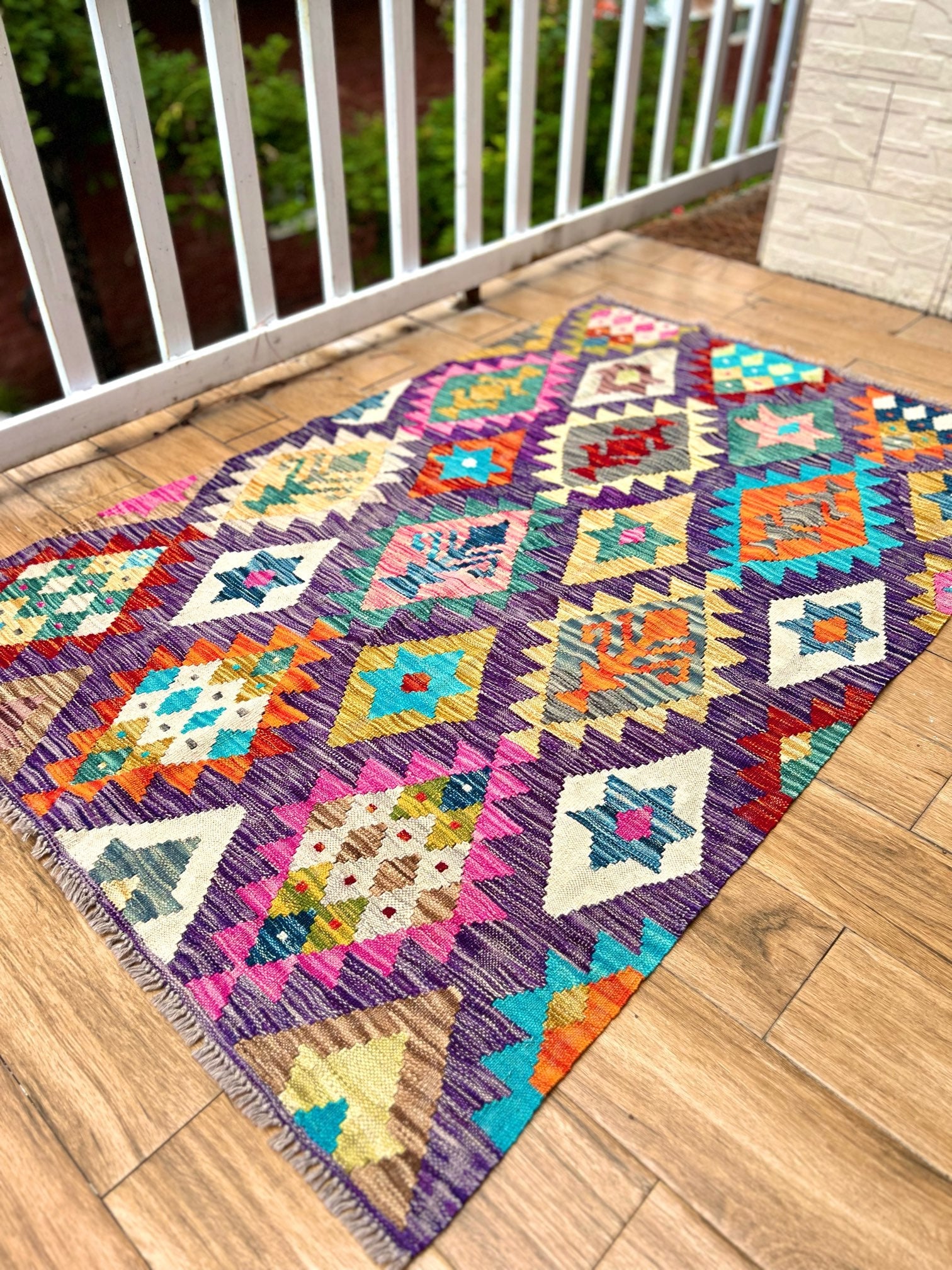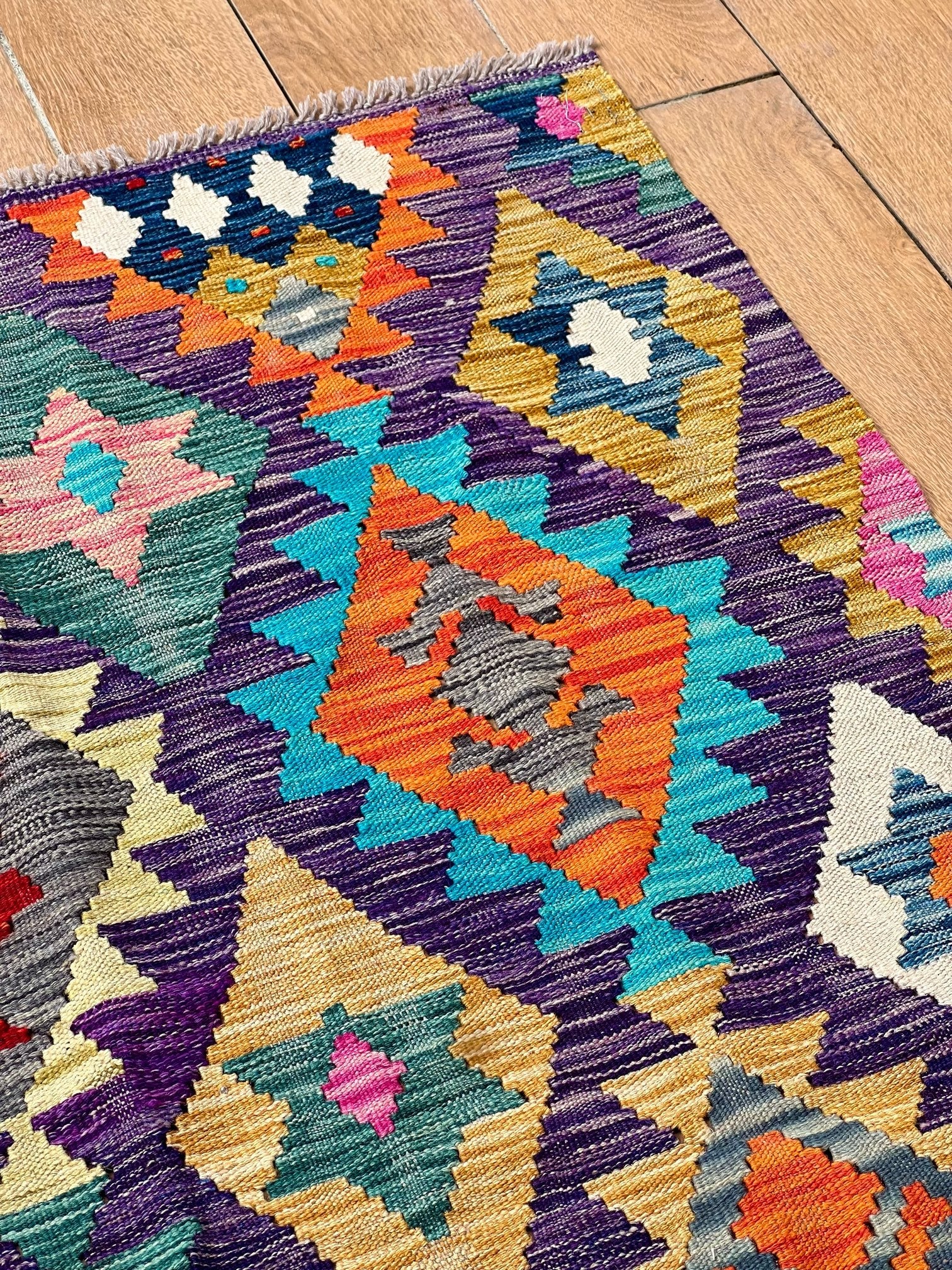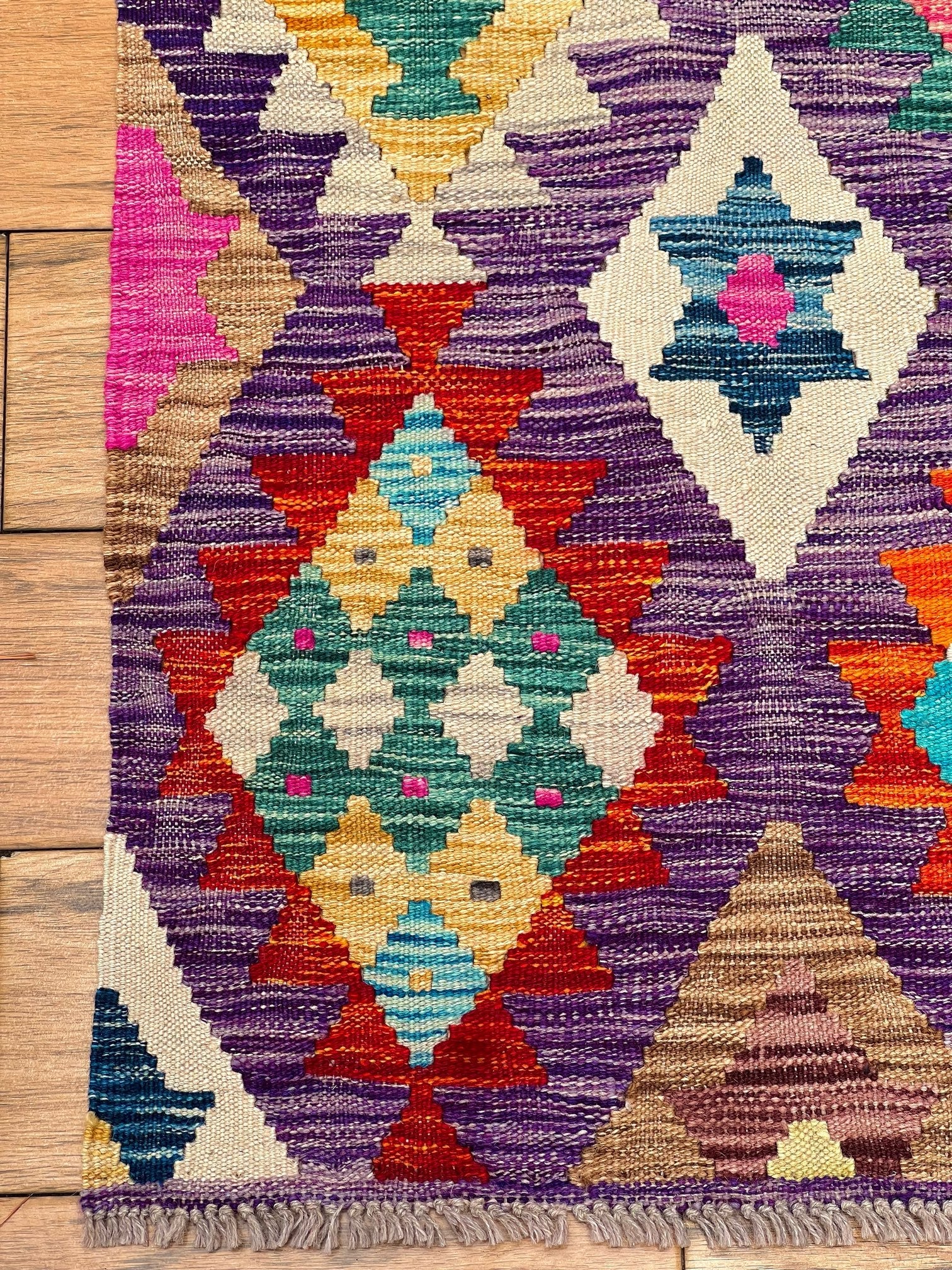 Crafted from the finest pure sheep wool and dyed with natural botanical dyes, "Majestic Peaks" exemplifies a commitment to quality and sustainability. Each kilim is meticulously handcrafted by skilled artisans, ensuring exceptional comfort, long-lasting beauty, and a touch of the mountains right in your Pakistani home.