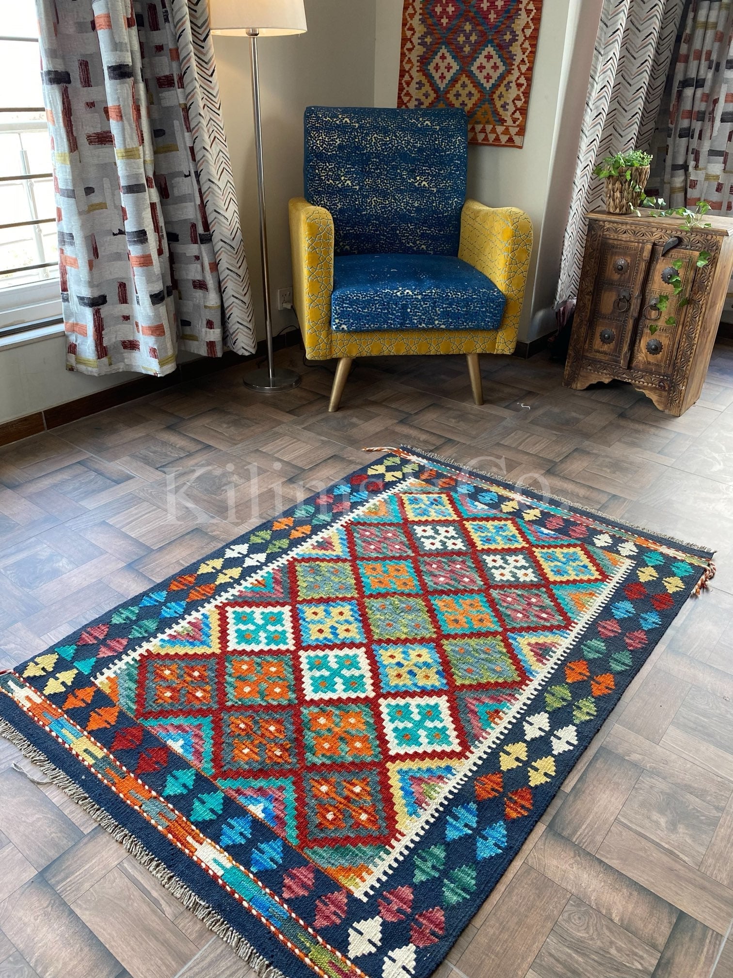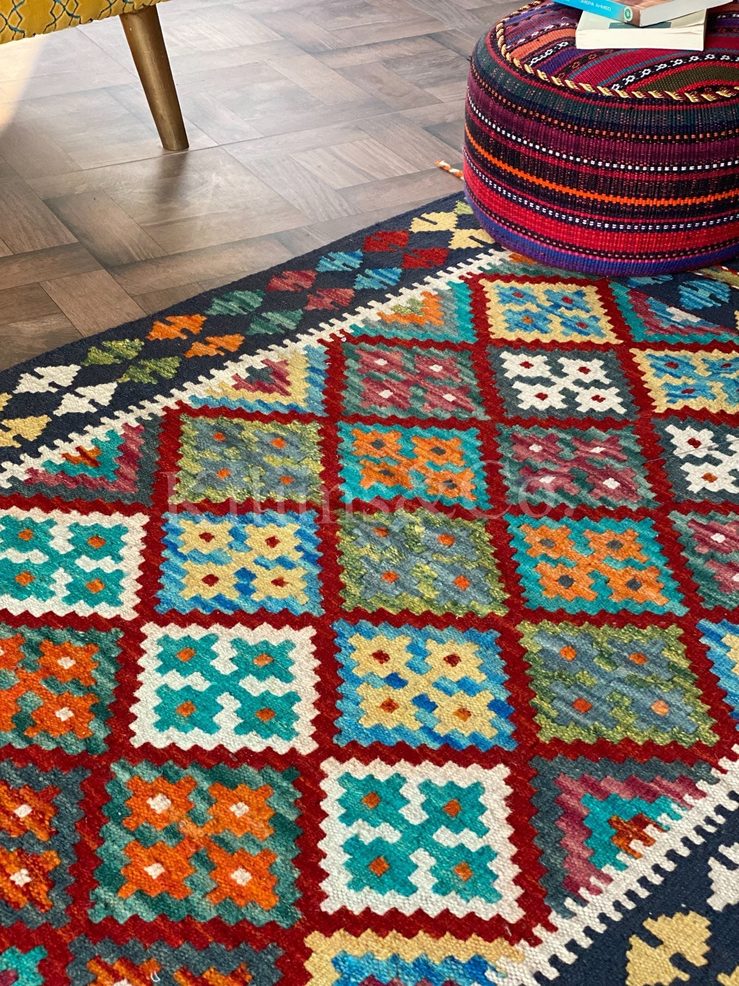 Our Pure Sheep wool Afghan Kilims also represent a diverse range of cultures, and artistic sensibilities. Made with Persian Knots and Organic vegetable, flower and fruit dyes. These kilims will upgrade any space, bringing in a traditional yet trendy vibe to complement your decor.
