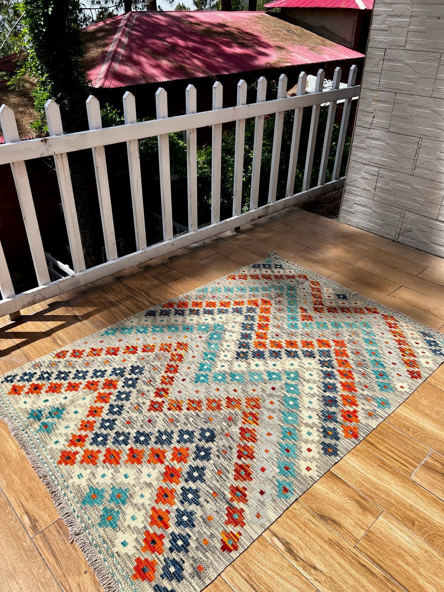 Made from pure sheep wool and dyed with natural botanical dyes, Serene Blooms exemplifies a commitment to quality and sustainability. The softness of the wool and the richness of the natural dyes ensure a kilim of exceptional comfort and long-lasting beauty.
