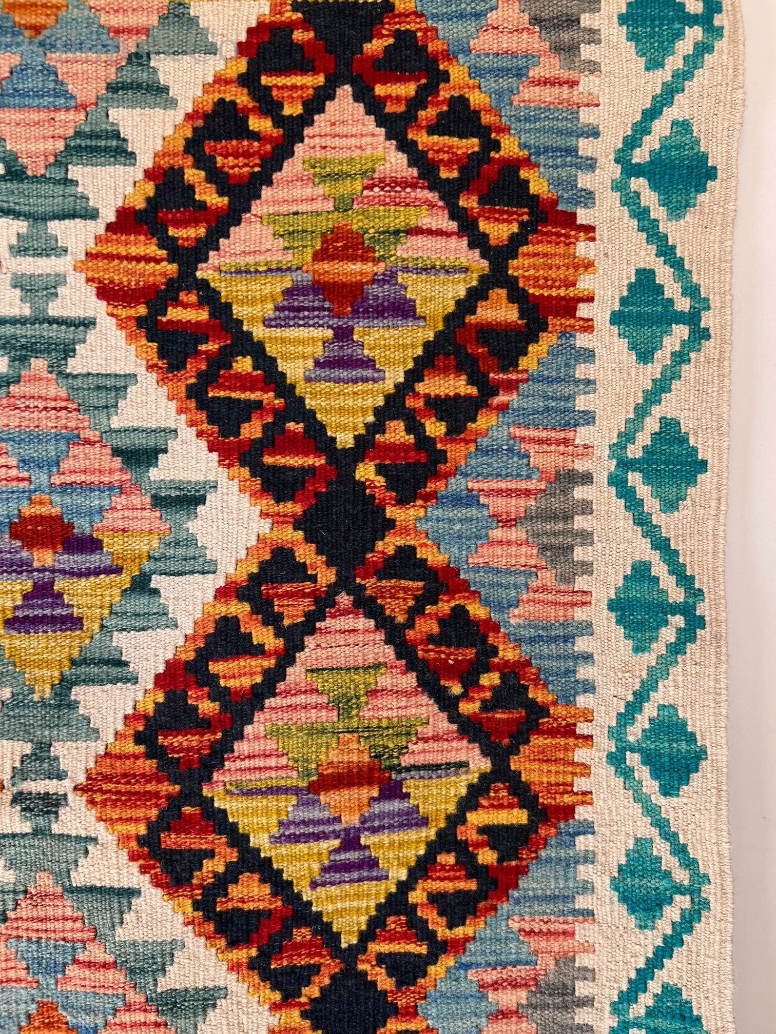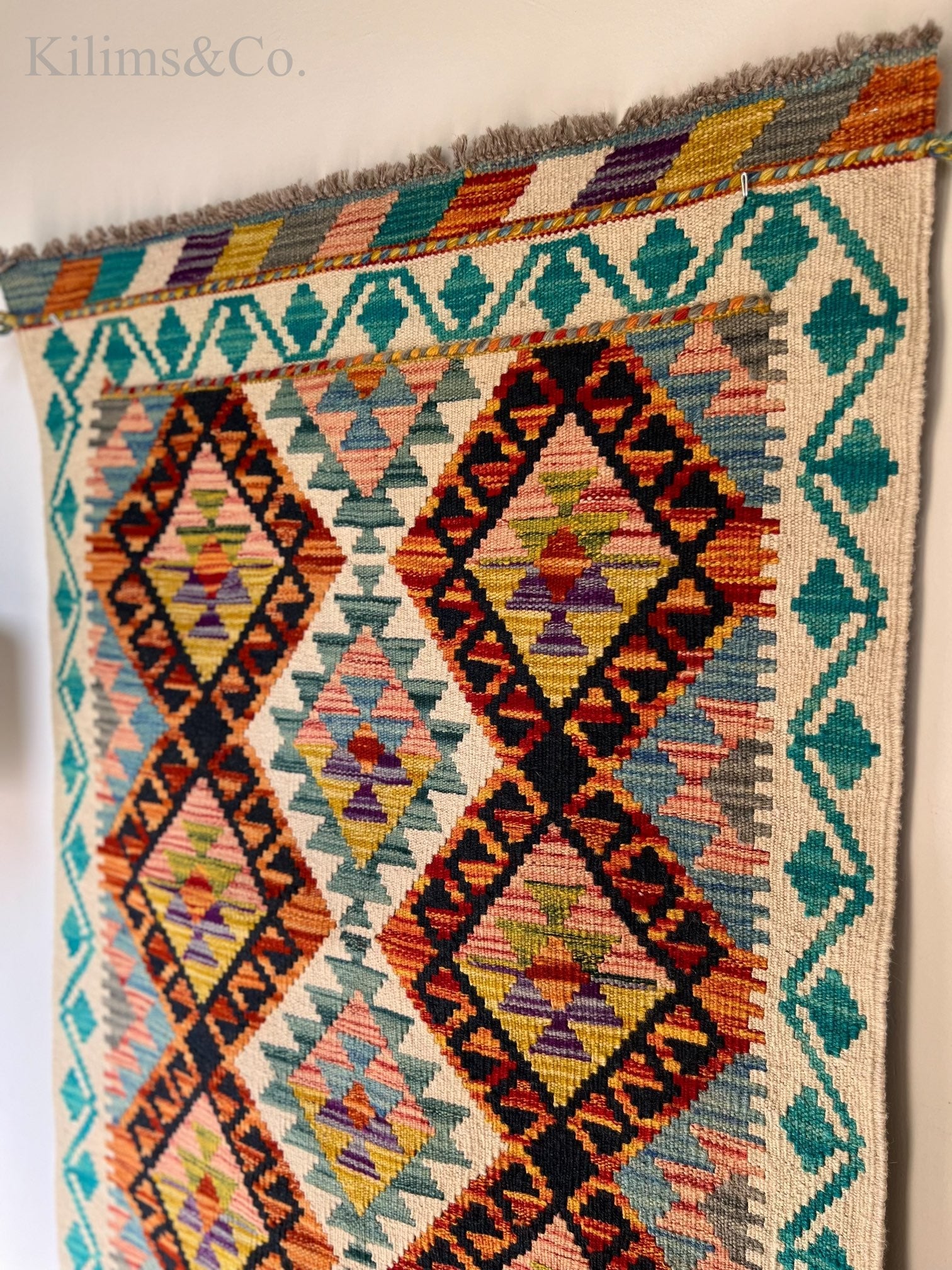 With this Premium Afghan Kilim, it's sharp vivid colours will please the eyes and make your room feel more homely.