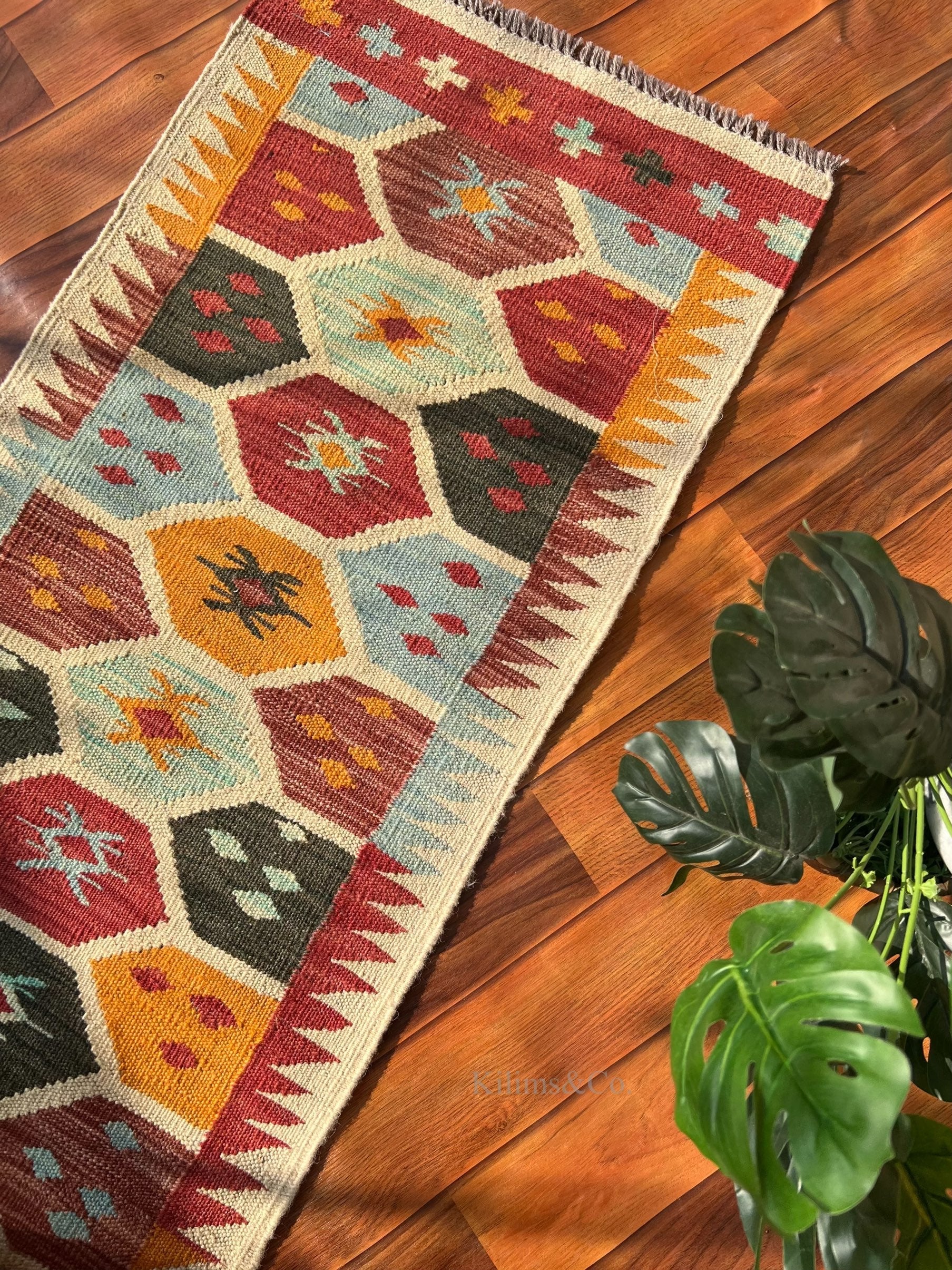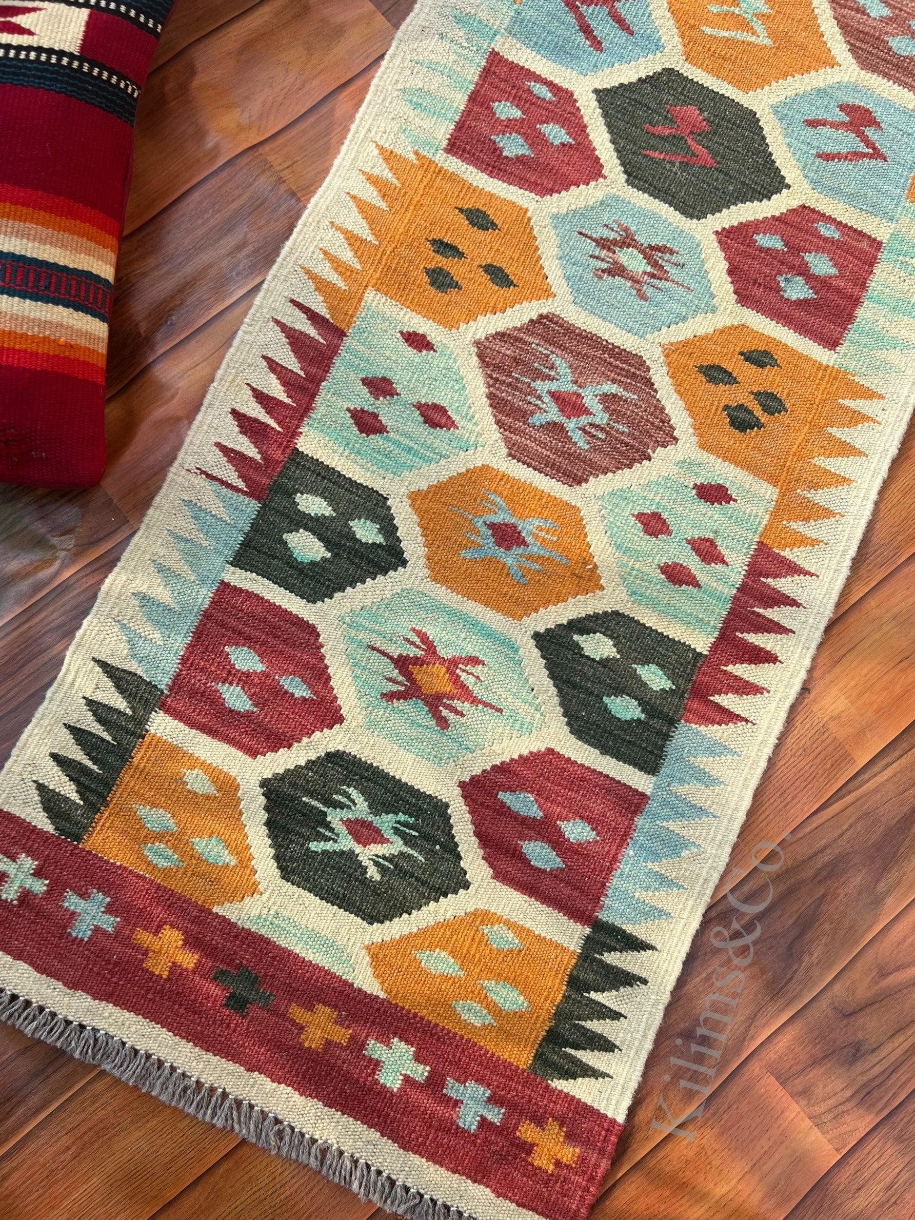 With this Premium Afghan Kilim, it's sharp vivid colours will please the eyes and make your room feel more homely.